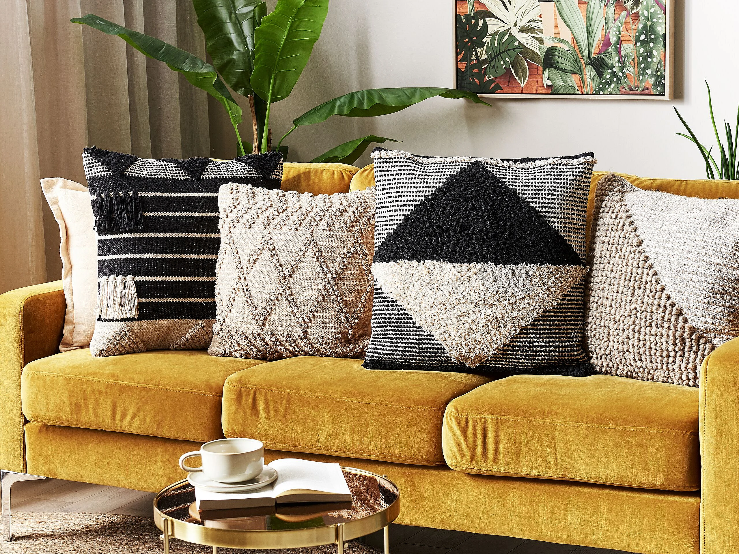 Dekokissen beige/schwarz 50x50 cm strukturiertes geometrisches Muster Khora
