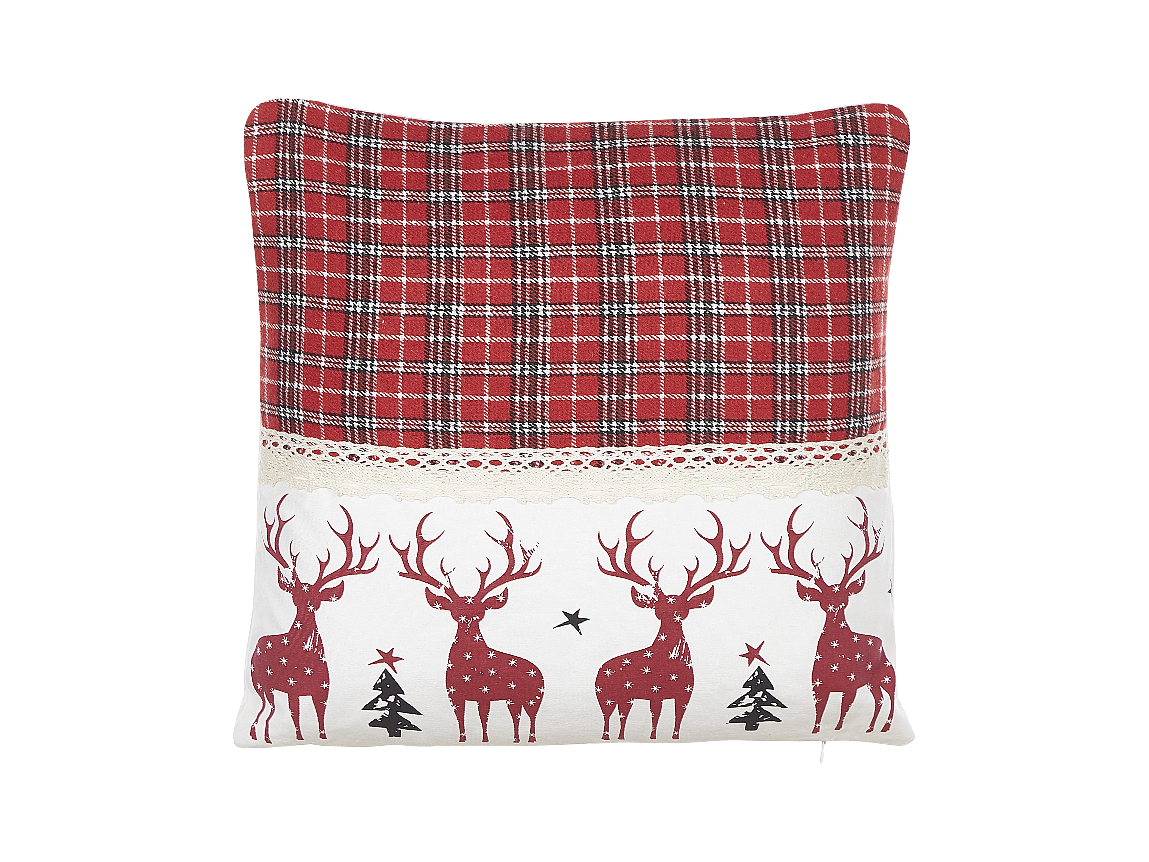 Dekokissen 2er Set Samt rot mit Füllung 45x45 cm Tiermotiv Rentier Bicocca