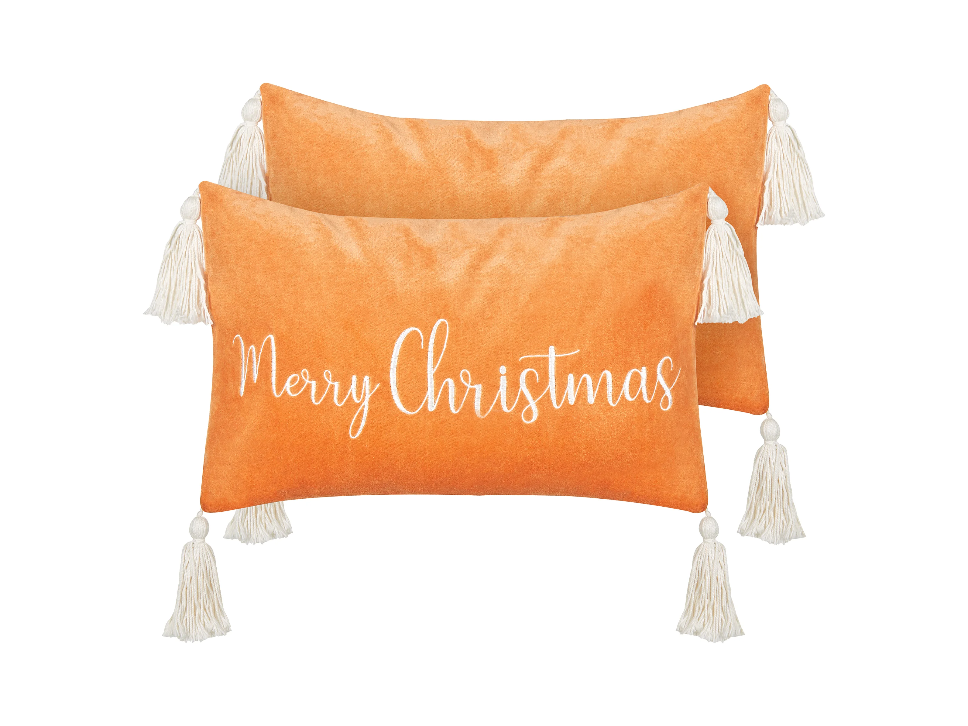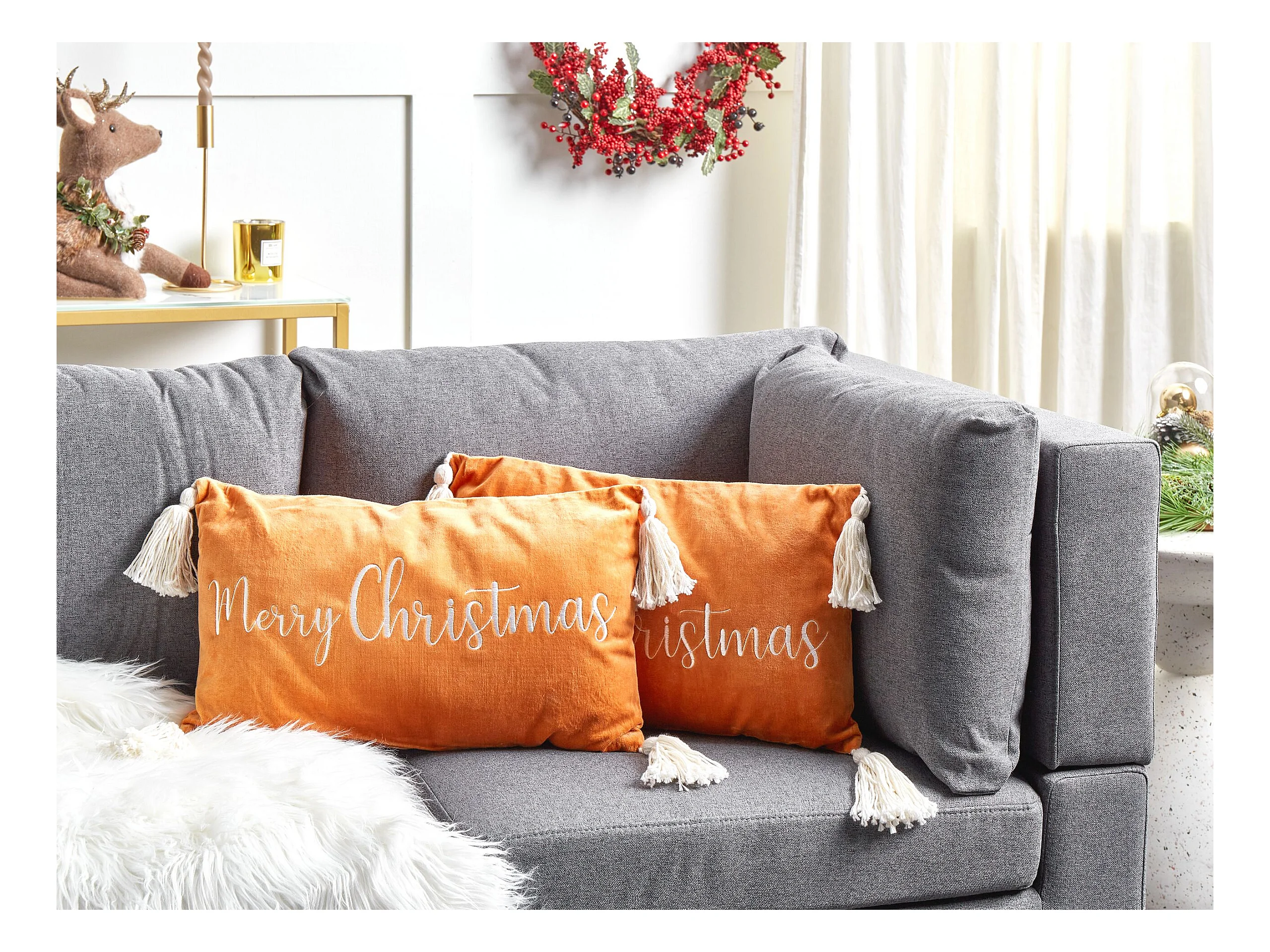 Dekokissen 2er Set LITHOPS Samtstoff 30 x 50 cm Orange Weihnachtsmotiv