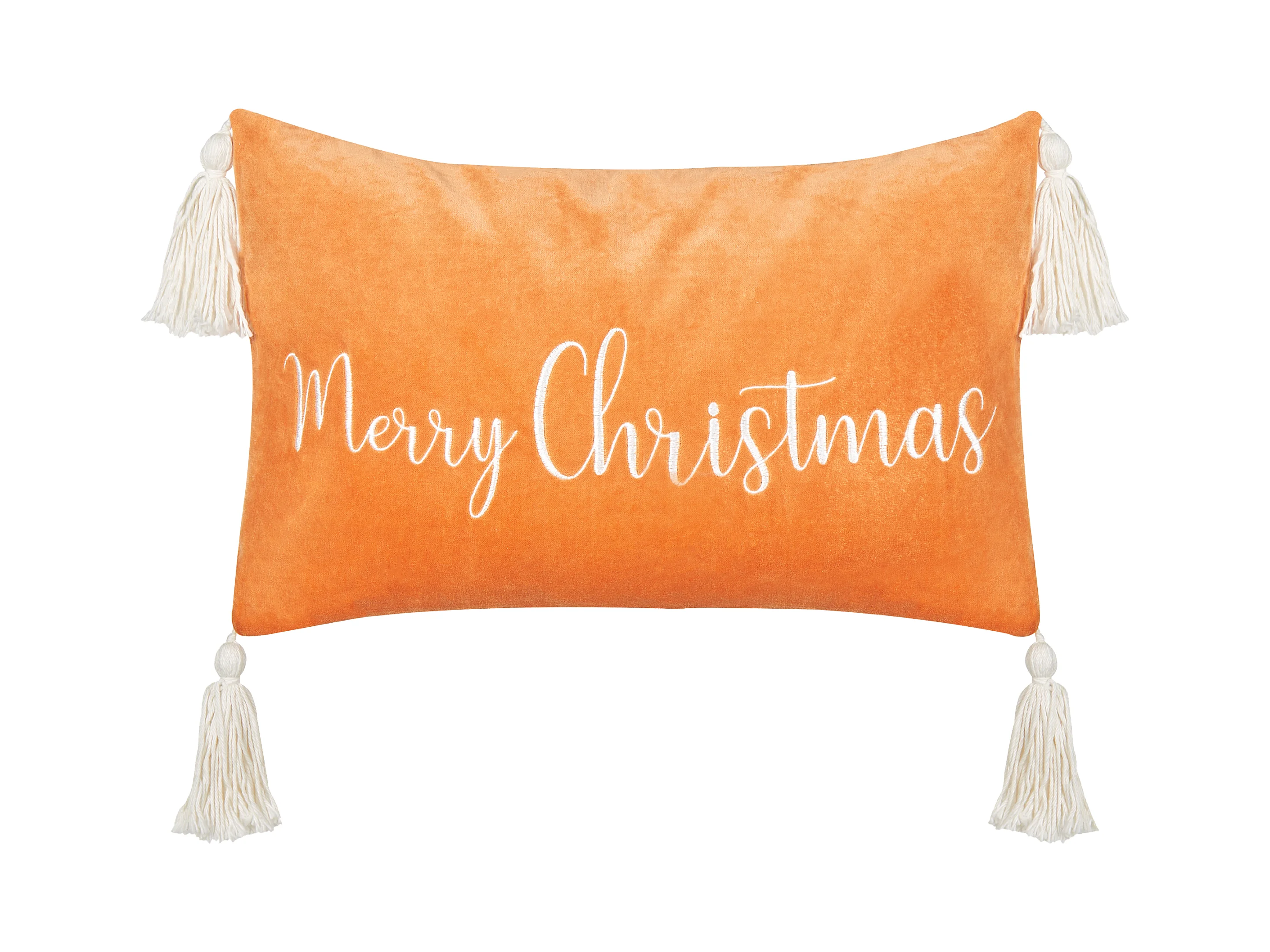 Dekokissen mit Füllung Samtstoff orange Weihnachtsmotiv 30x50 cm modern Lithops