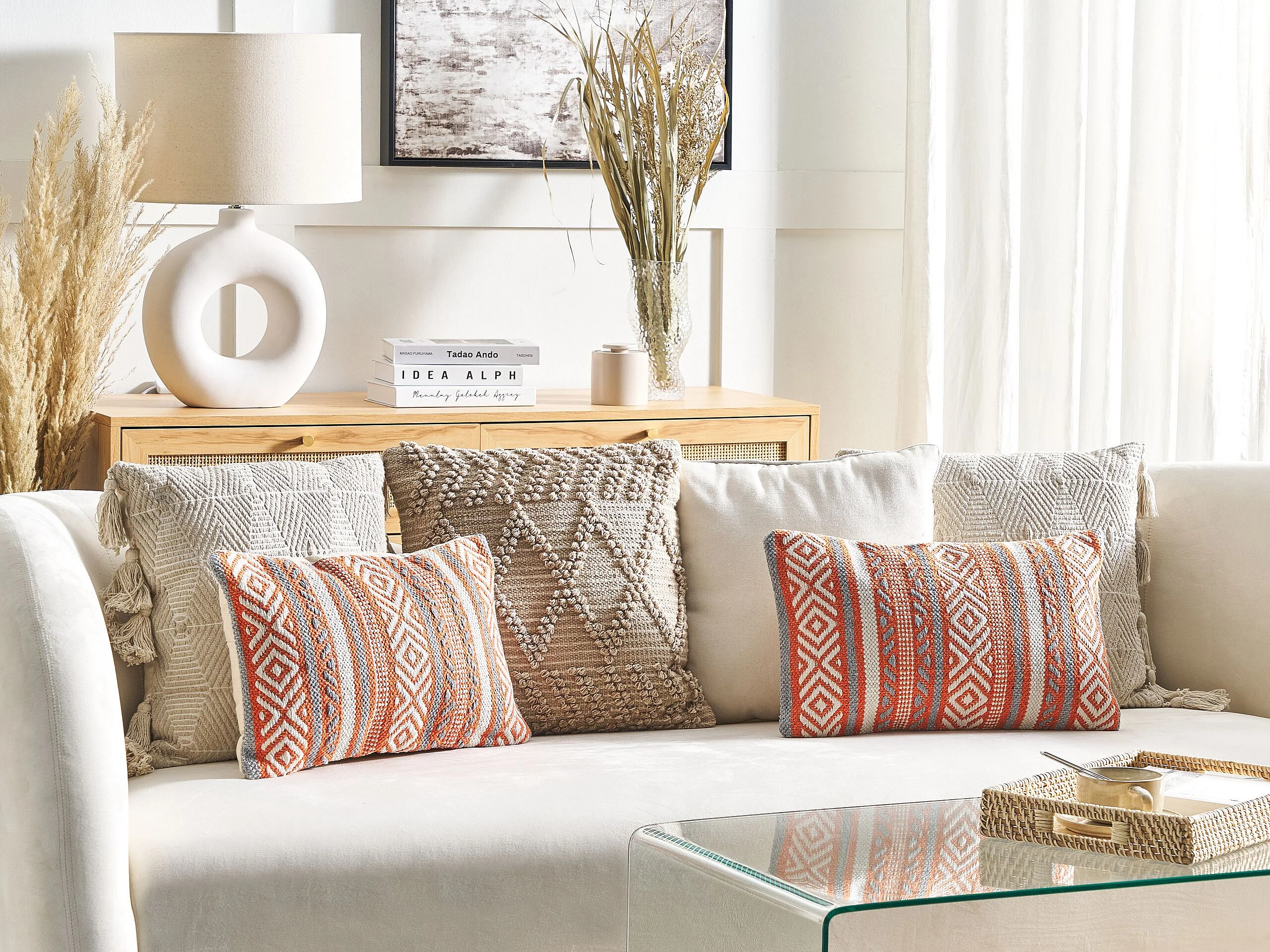 Dekokissen 2er Set mit Füllung geometrisches Muster Baumwolle bunt 35 x 55 cm Inula