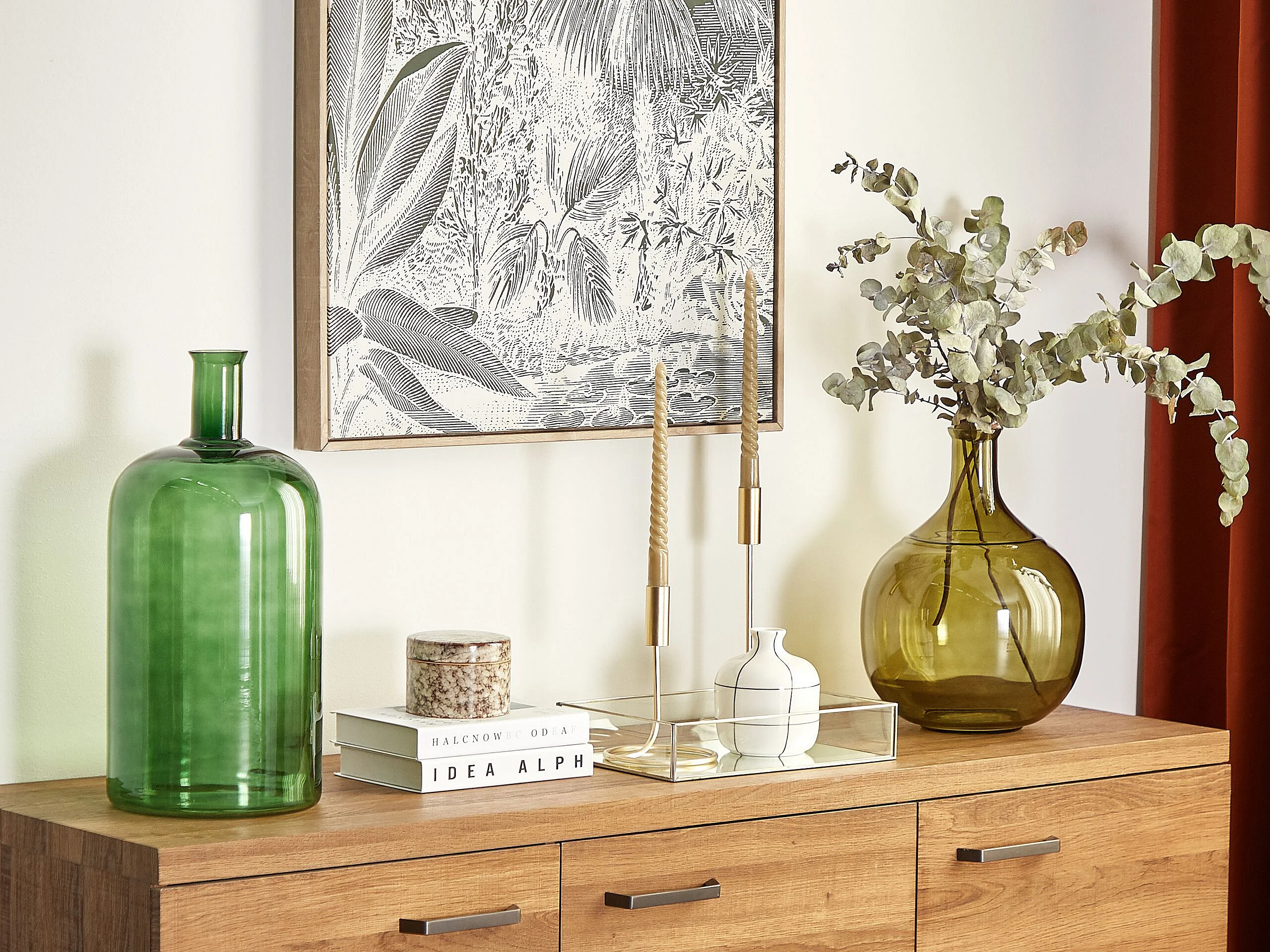 Blumenvase aus gefärbtem Glas handgefertigt grün 45 cm Korma