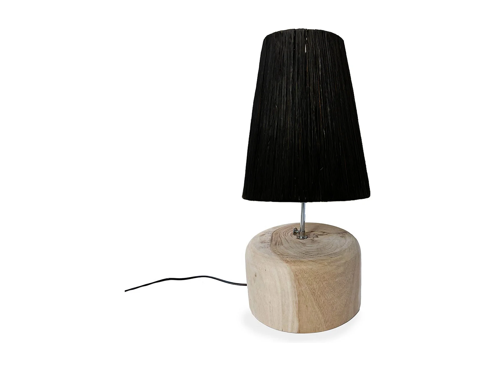 Die Raffia-Teakholz-Tischlampe - Natur-Schwarz