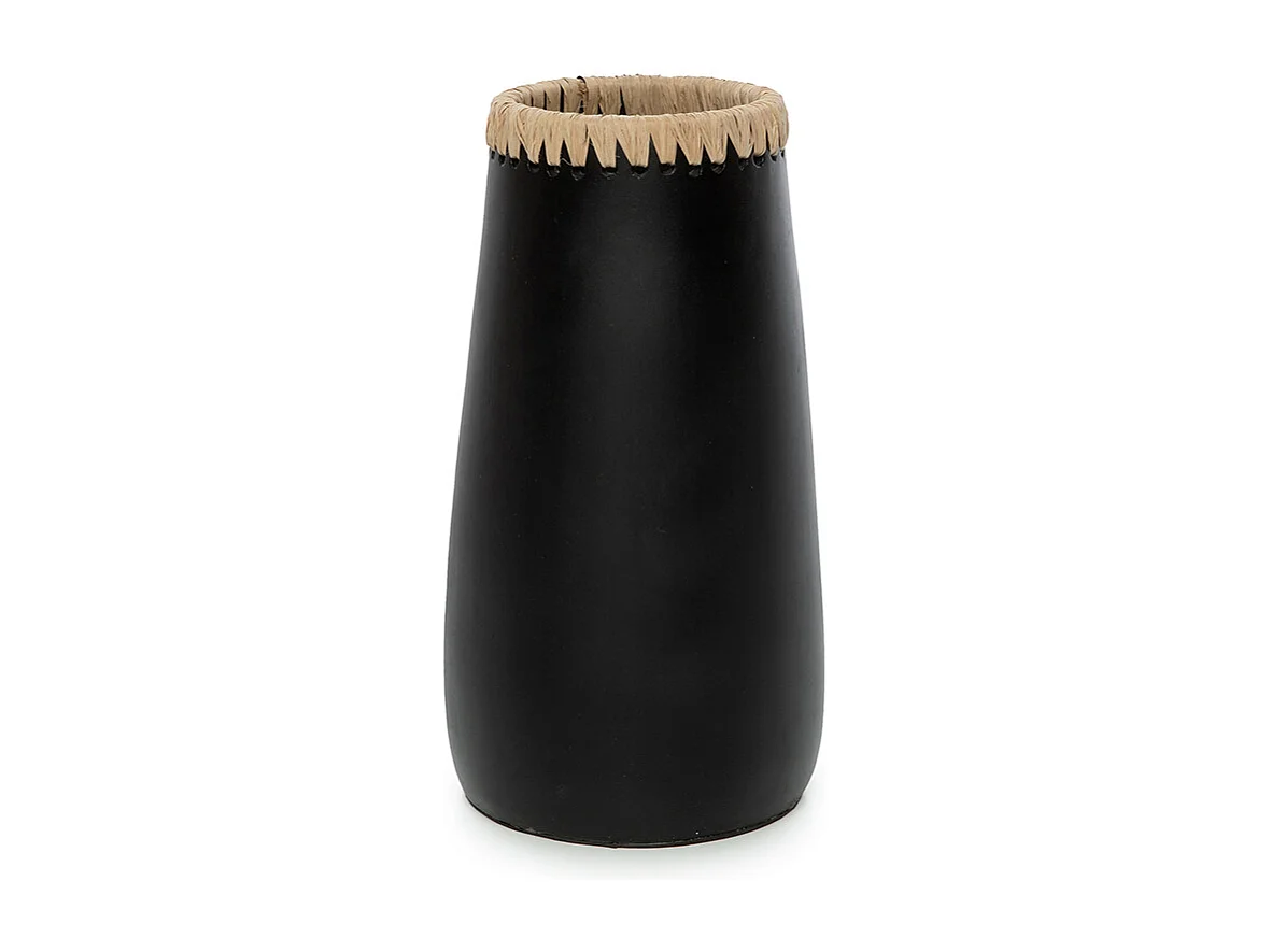 Dekovase Terrakotta gelb/ schwarz/ weiß bunt 34 cm handgefertigt Vintage Malakka