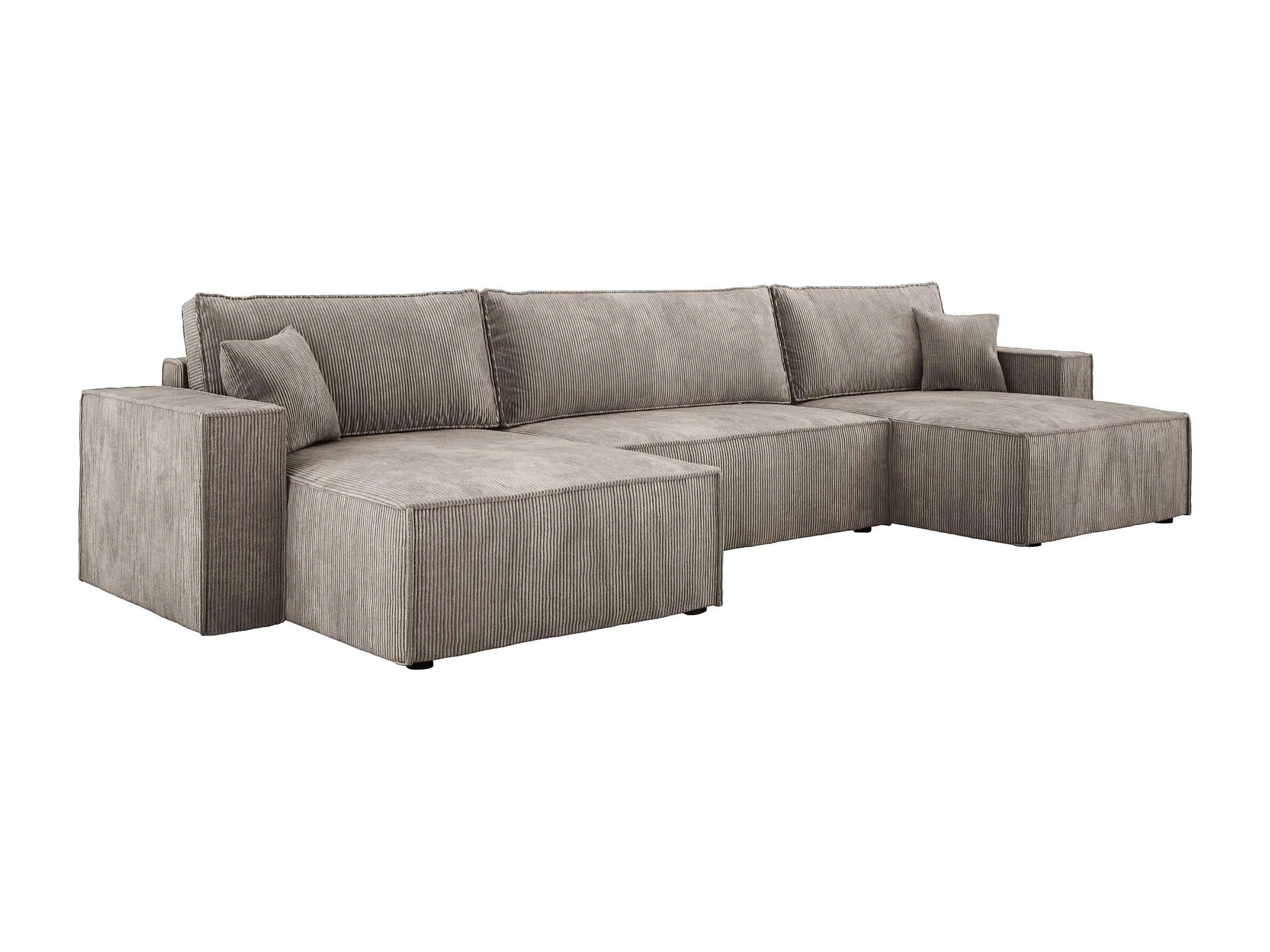 Plaza Ecksofa U-Form - Rechte Seite, Schlaffunktion, Verstellbare Kopfstützen, Wellenfedersystem, Hochelastischer Schaum, 385x216 cm, Beige