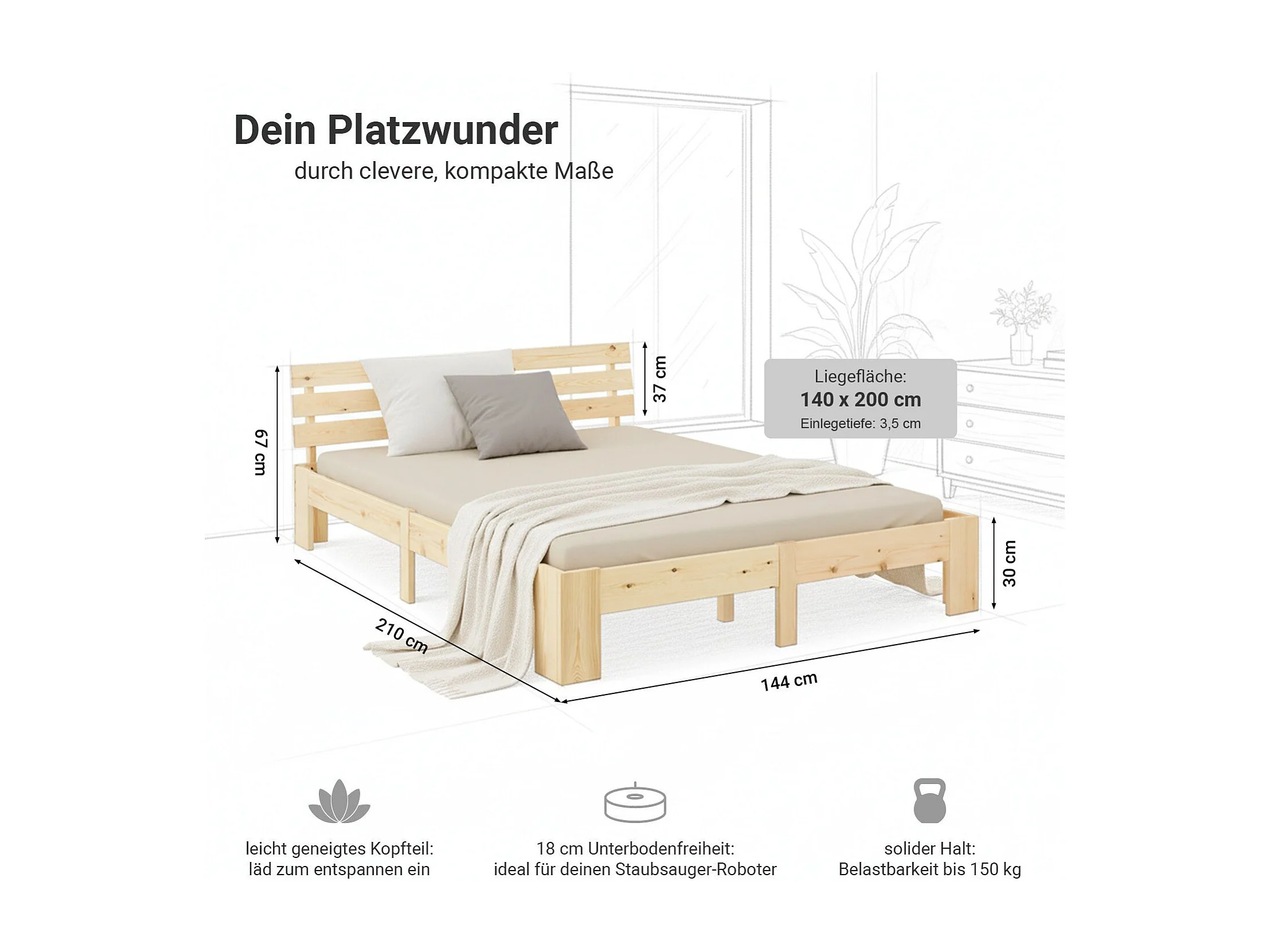 Doppelbett 140x200 cm Naturkiefer