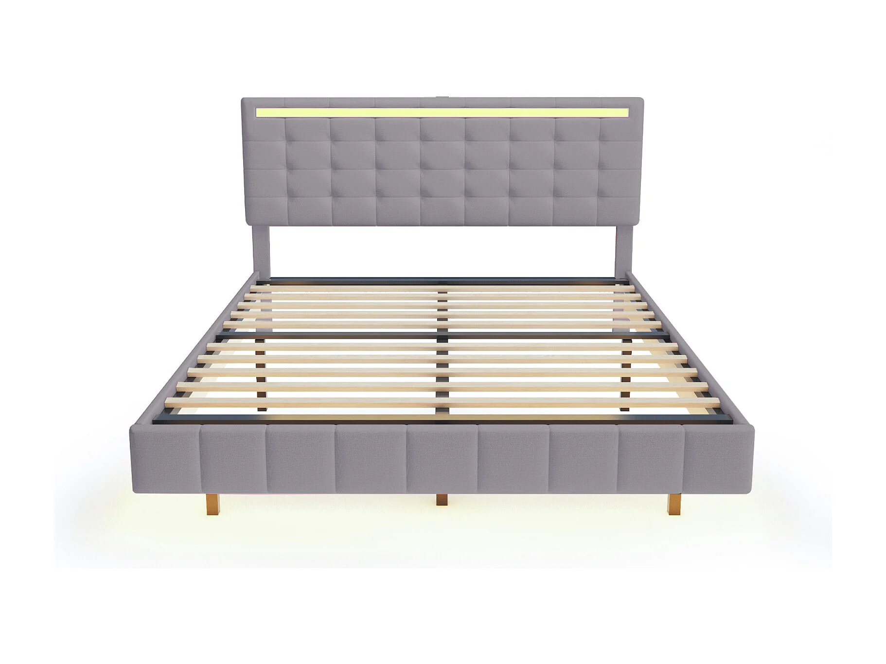 Doppelbett 160 x 200 cm, Gepolstertes Schwebebettgestell, Mit LED, Leinen, Grau