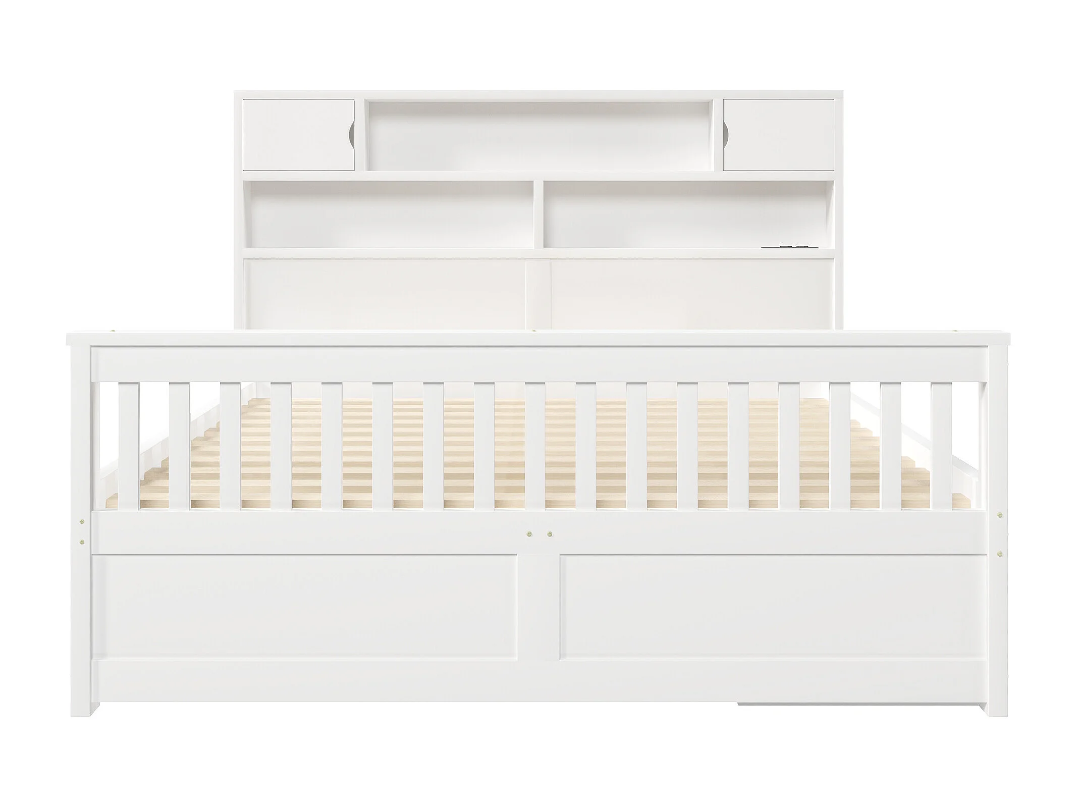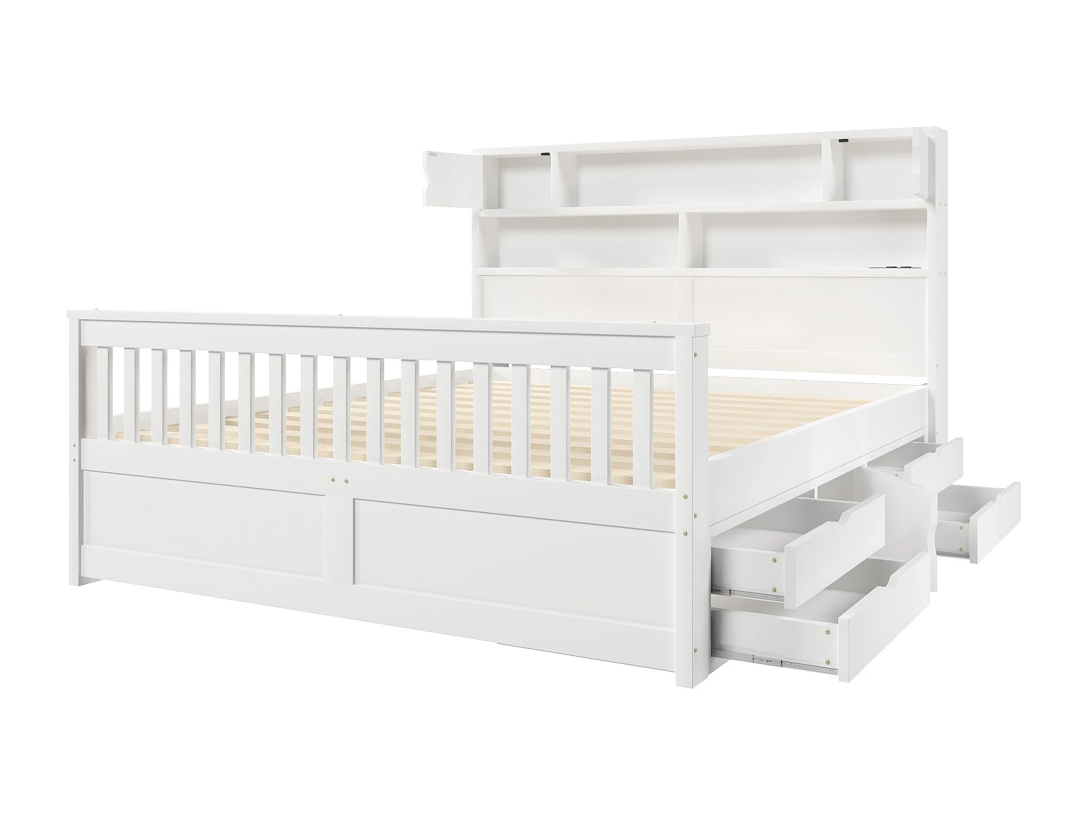 Doppelbett 160x200 cm - Mit 4 Schubladen - Kopfteil mit Stauraum - LED-Beleuchtung und USB-Anschluss - MDF - Weiß​ (ohne Matratze)