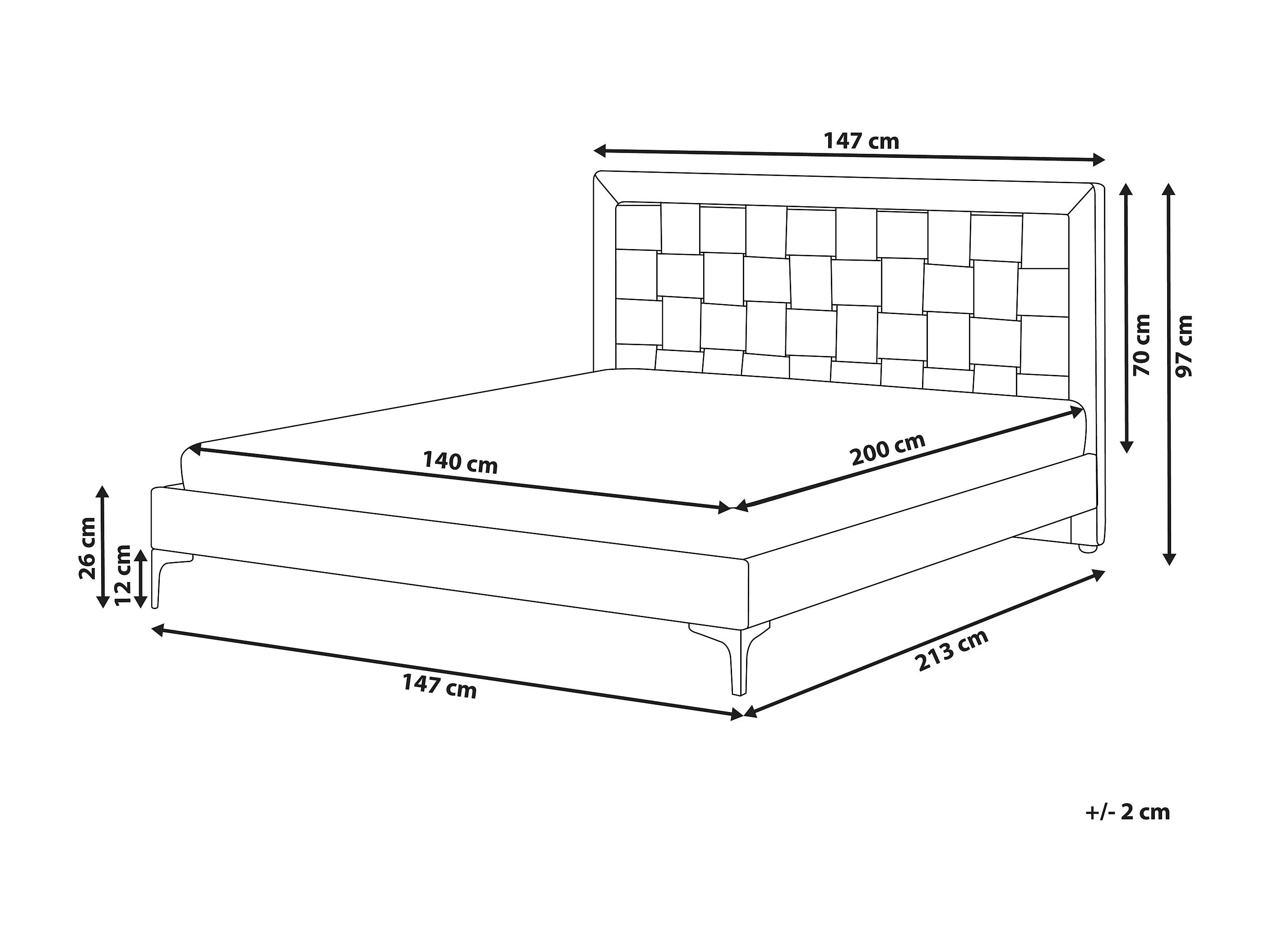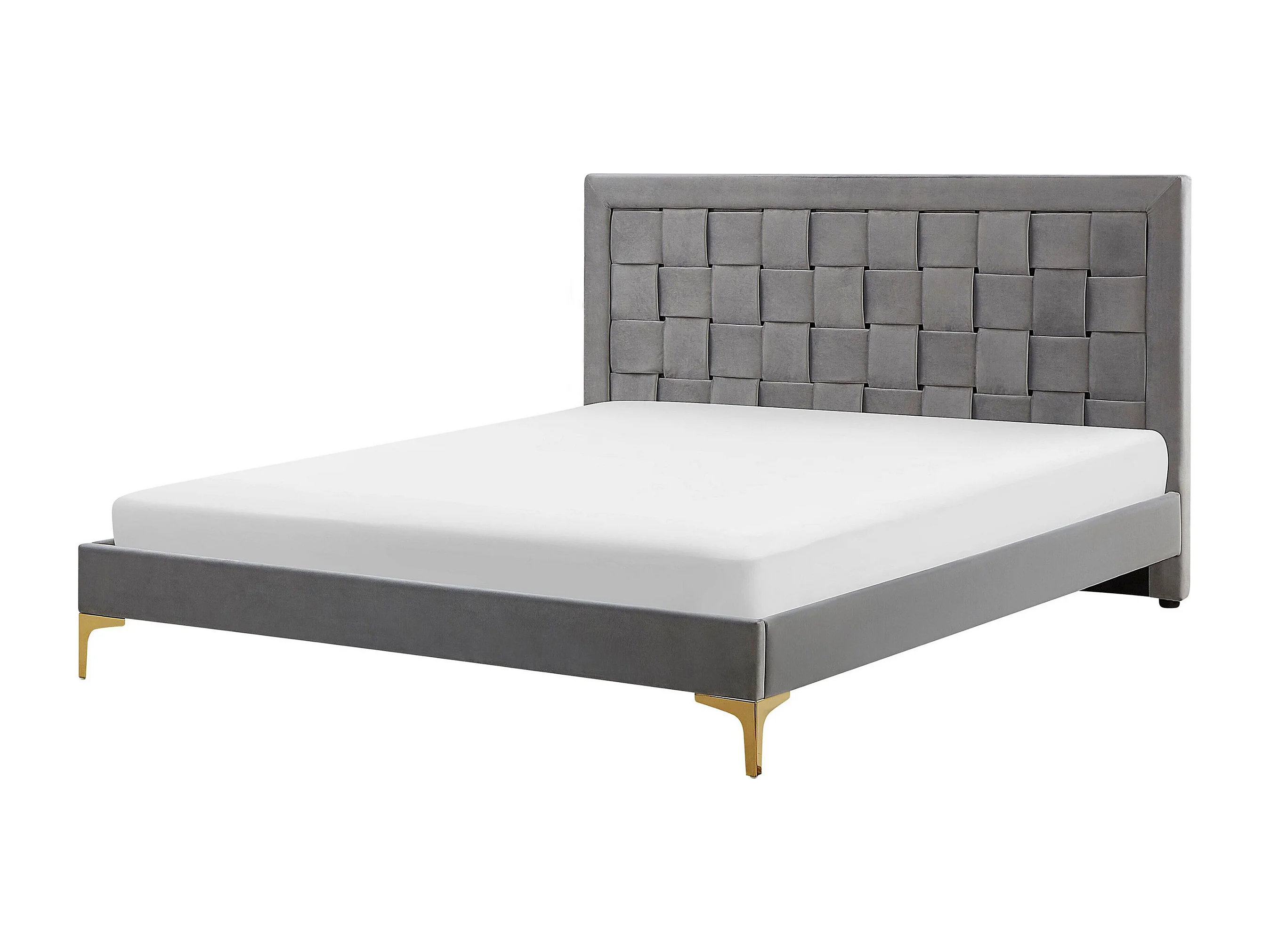 Luxuriöses Doppelbett aus Samtstoff in Grau mit Lattenrost 140 x 200 cm Limoux