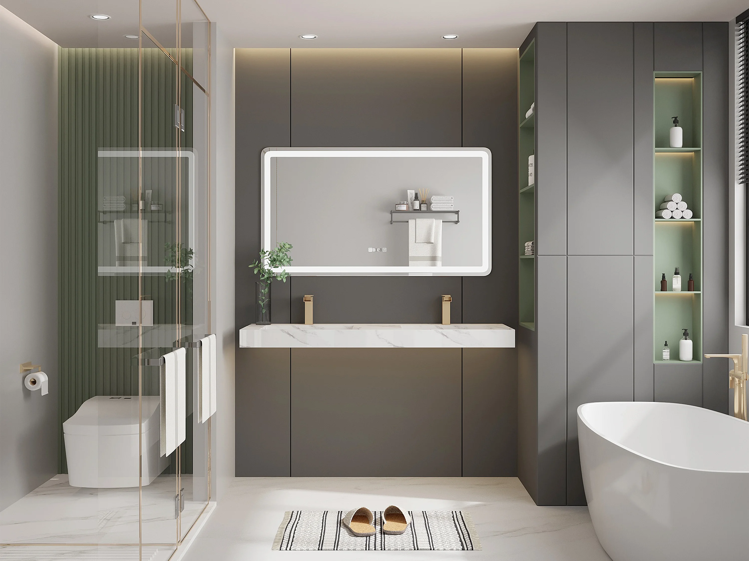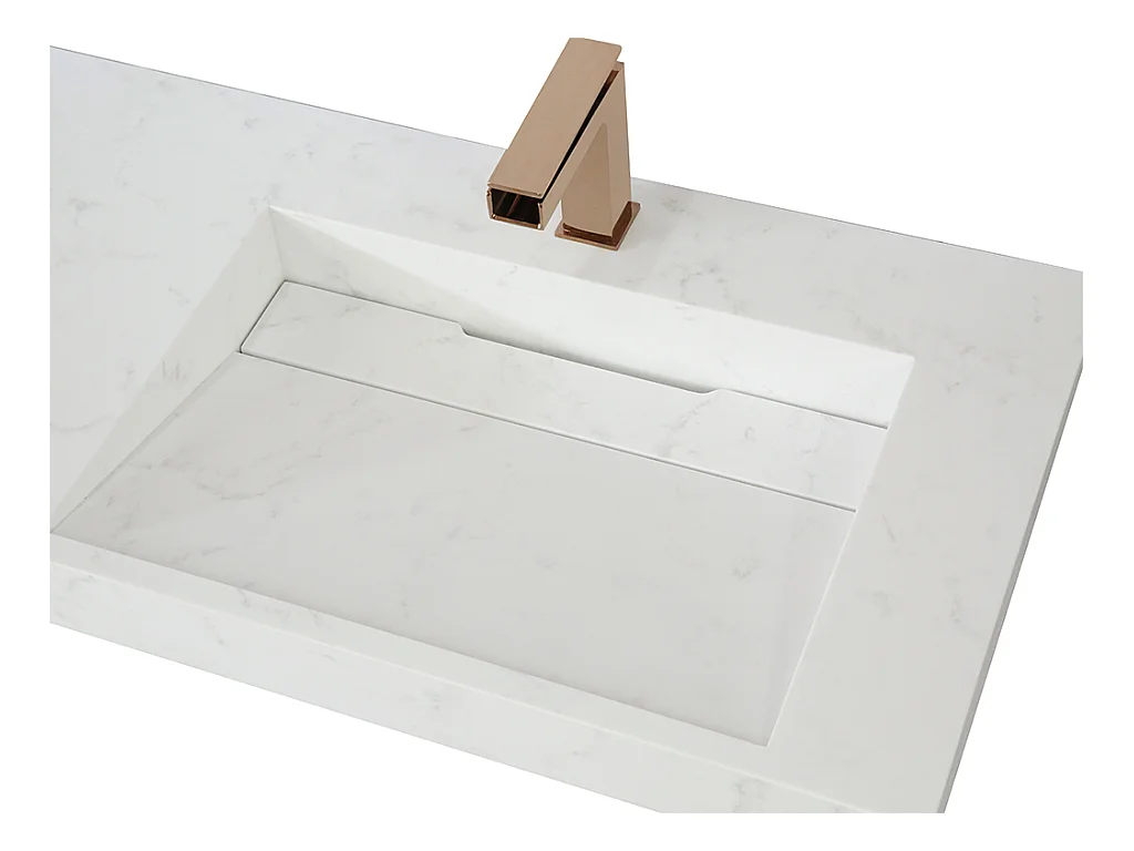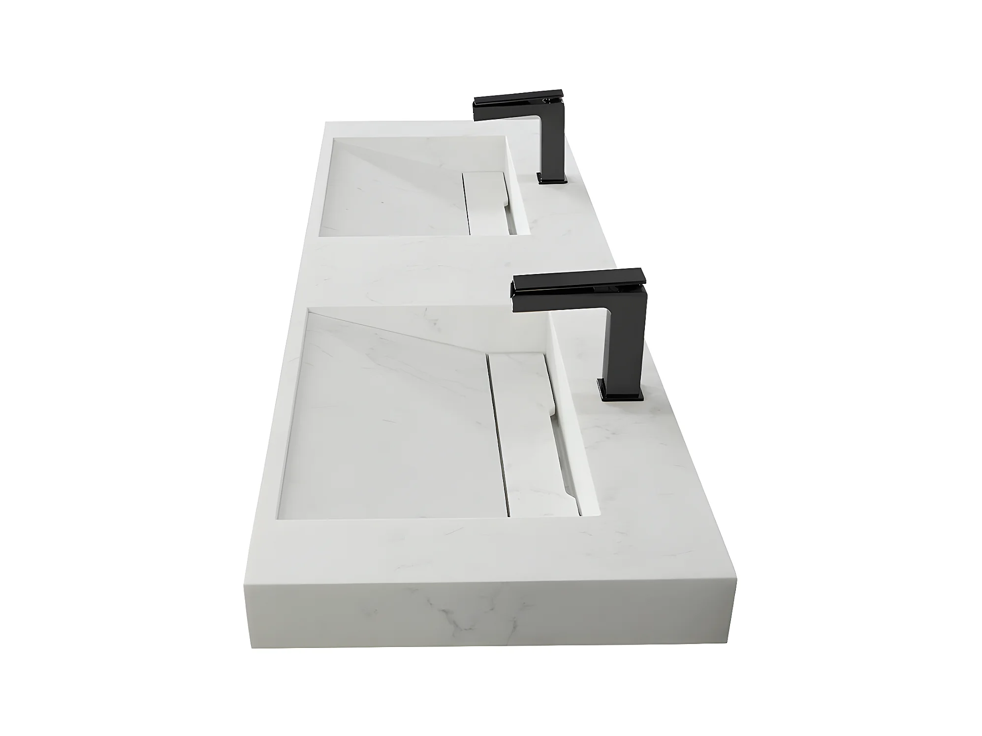 Doppelwaschbecken hängend - 140,2 x 45,2 x 8 cm - Weiß mit Marmor-Optik - KODIAK