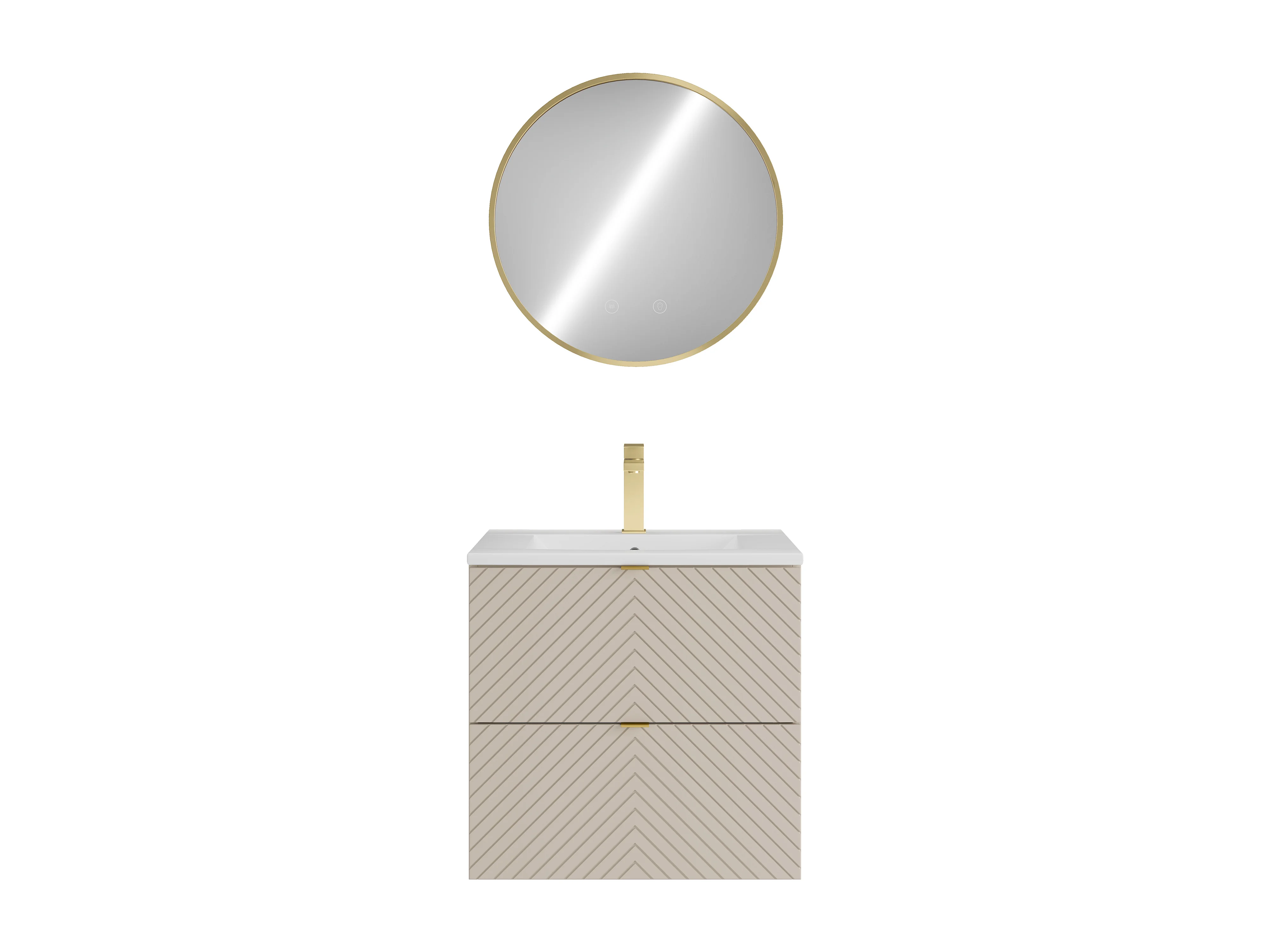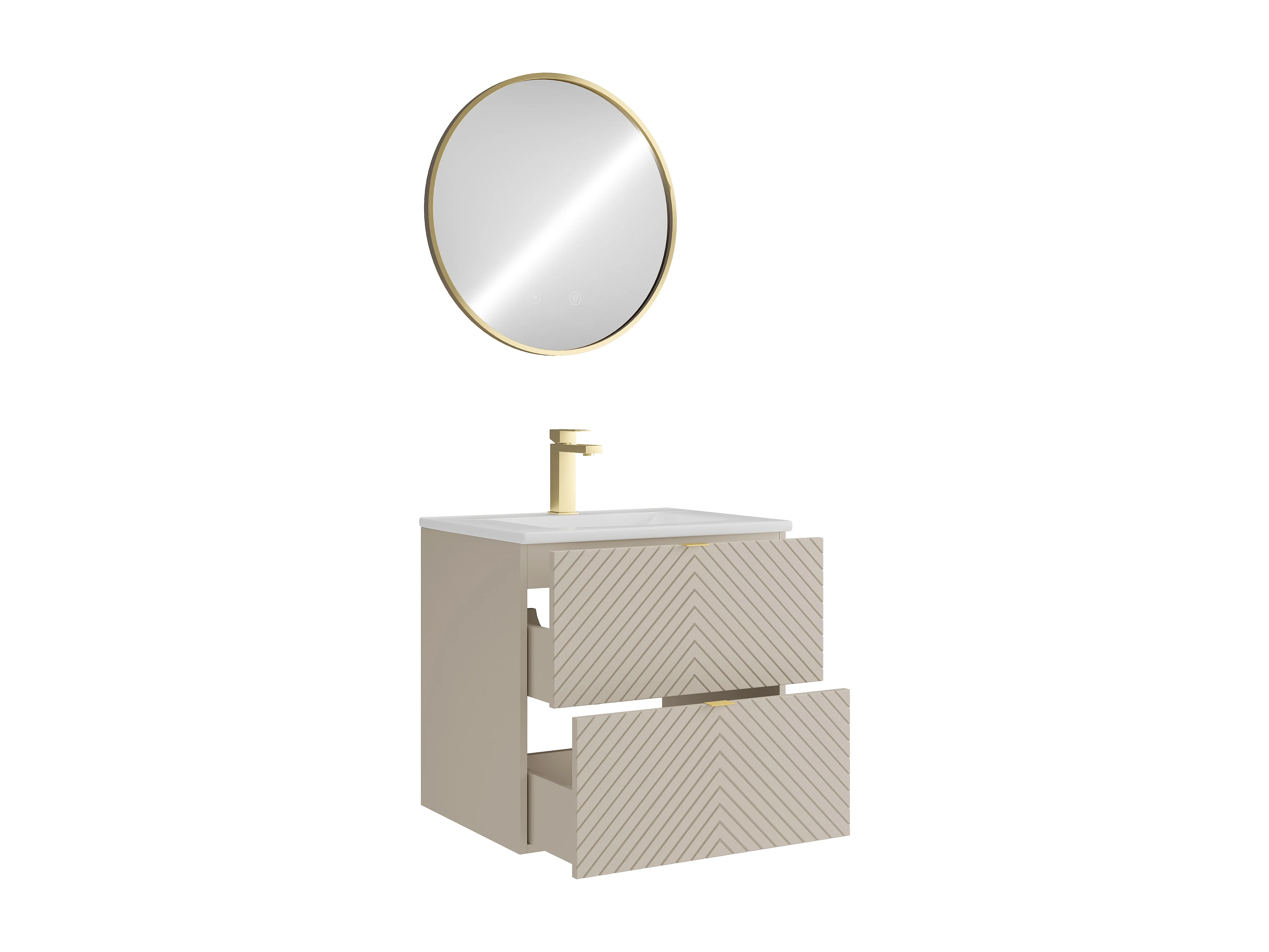 Hängender Badschrank Chevron-Muster mit Einbauwaschbecken, Armatur und Spiegel - Beige - 60 cm - DORIONI