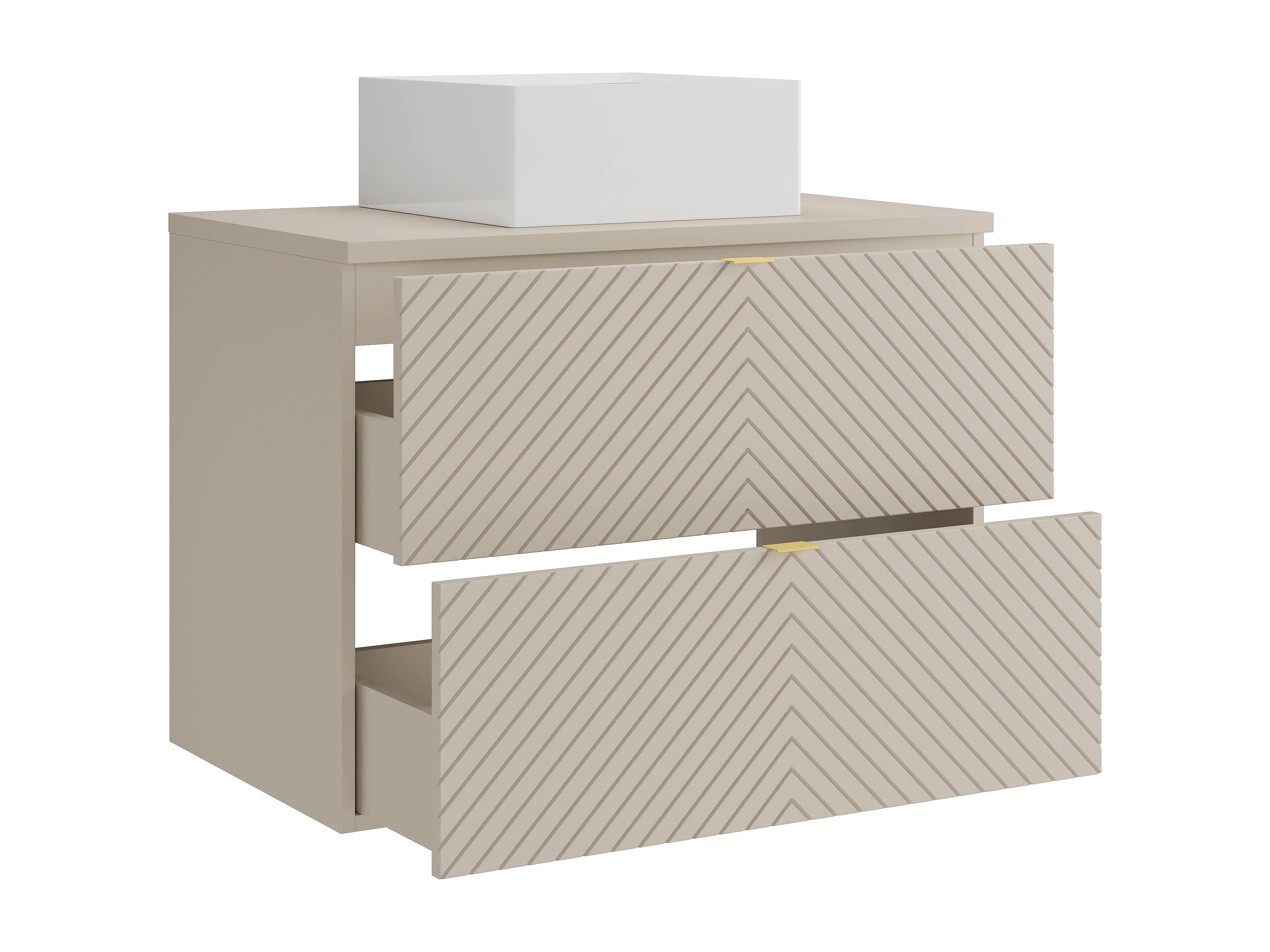 Hängender Badschrank mit Aufsatzwaschbecken quadratisch - Beige - 80 cm - DORIONI