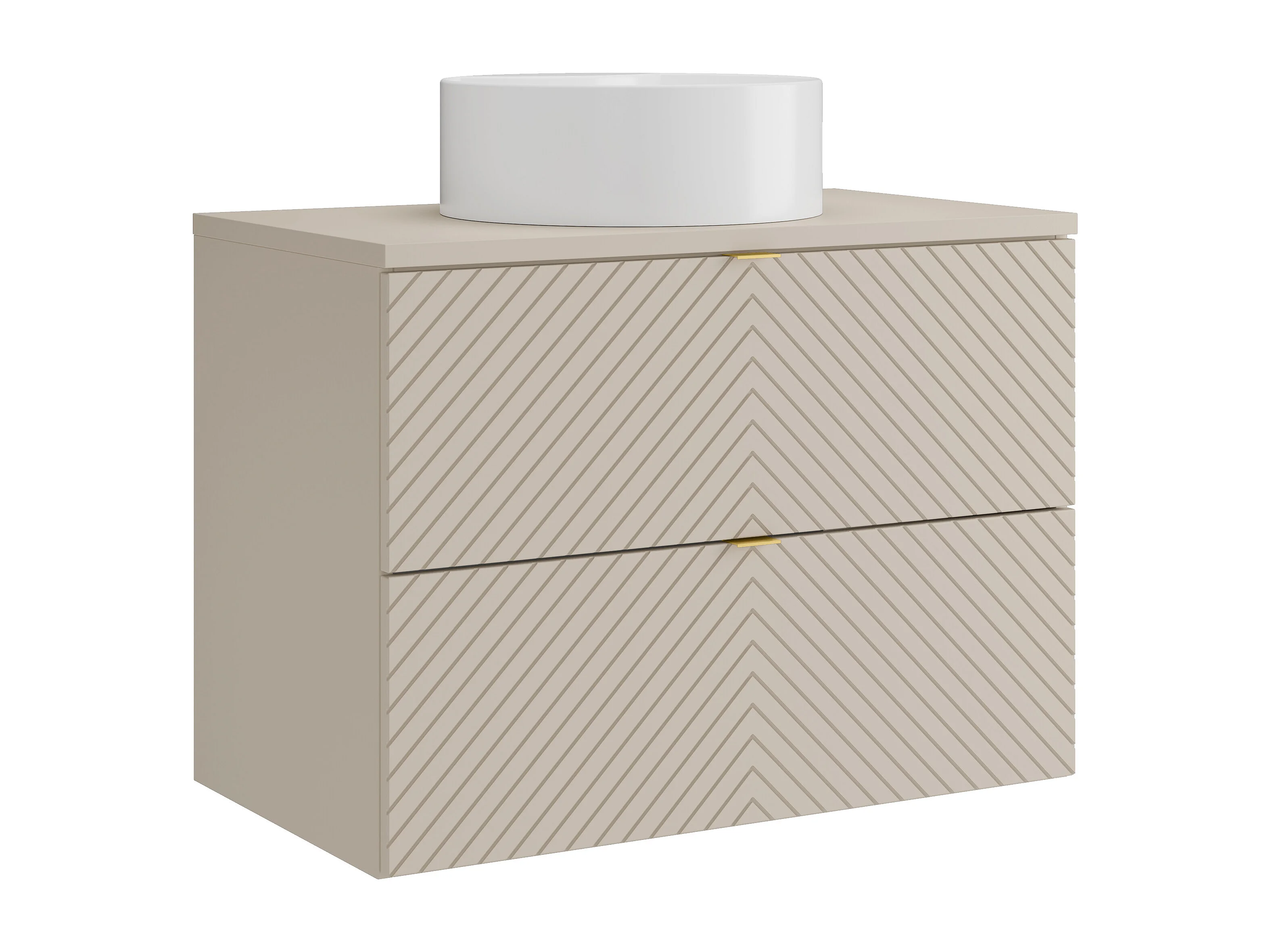 Hängender Badschrank mit Aufsatzwaschbecken rund - Beige - 80 cm - DORIONI