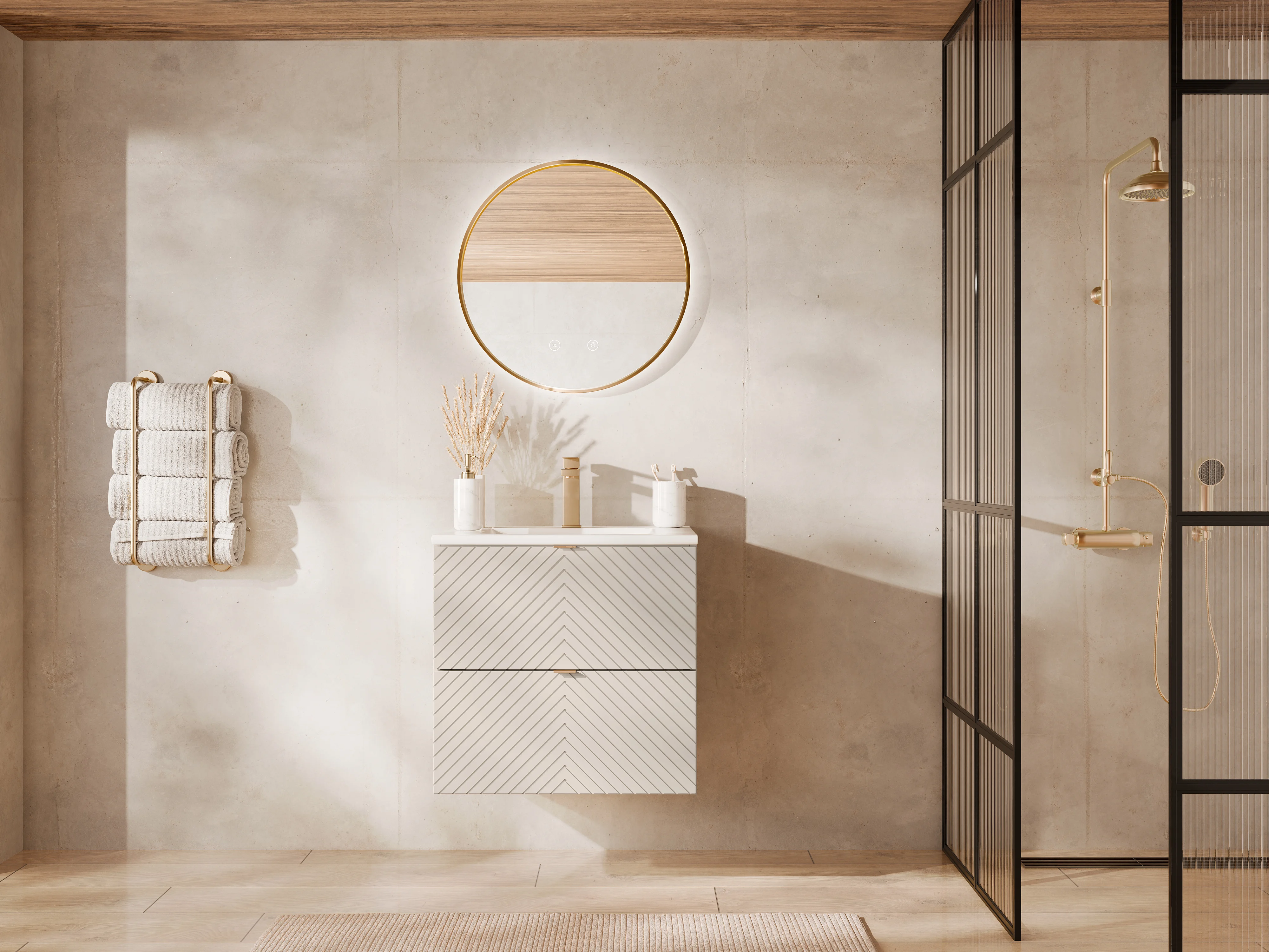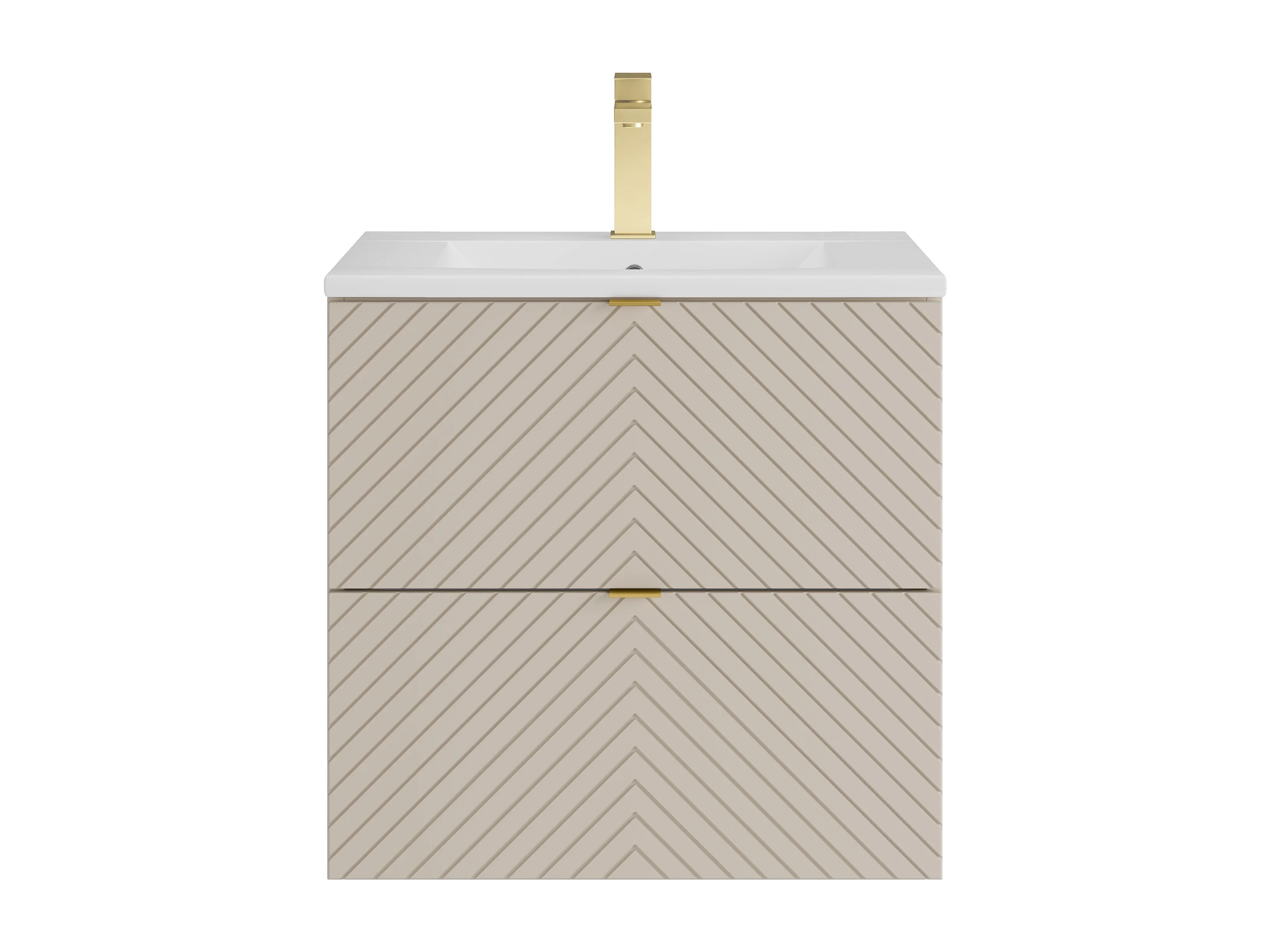 Hängender Badschrank mit Einbauwaschbecken und Armatur - Beige - 60 cm - DORIONI