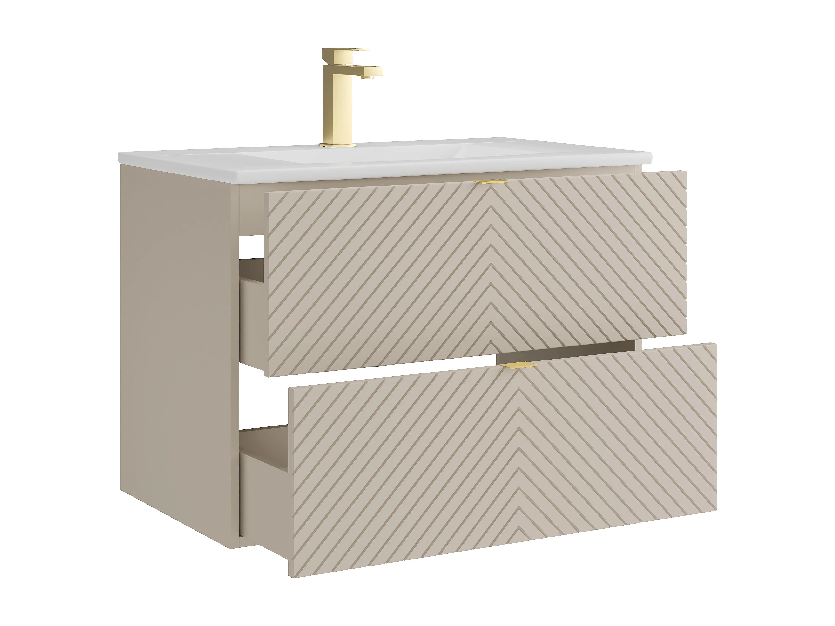 Hängender Badschrank mit Einbauwaschbecken und Armatur - Beige - 80 cm - DORIONI