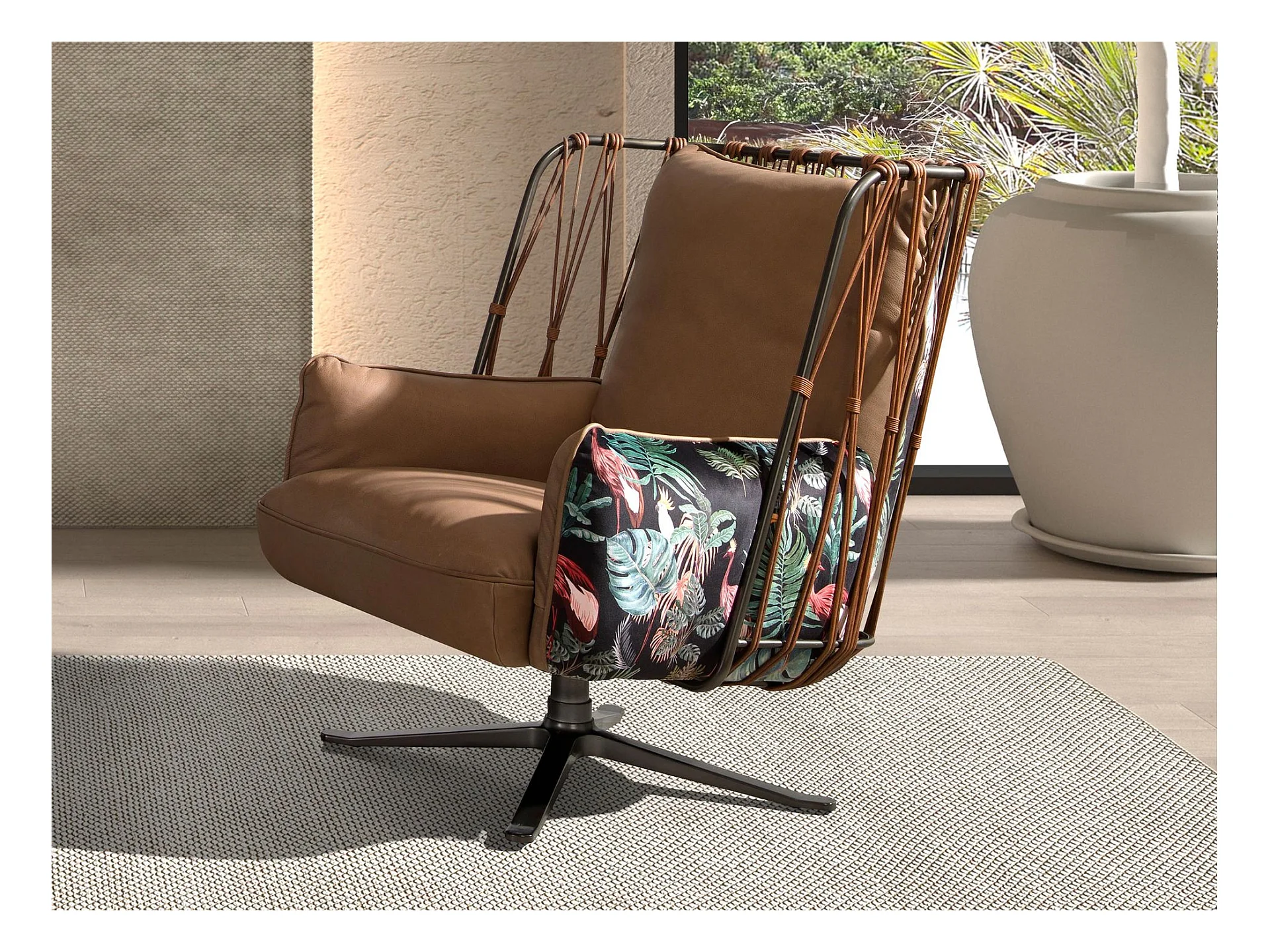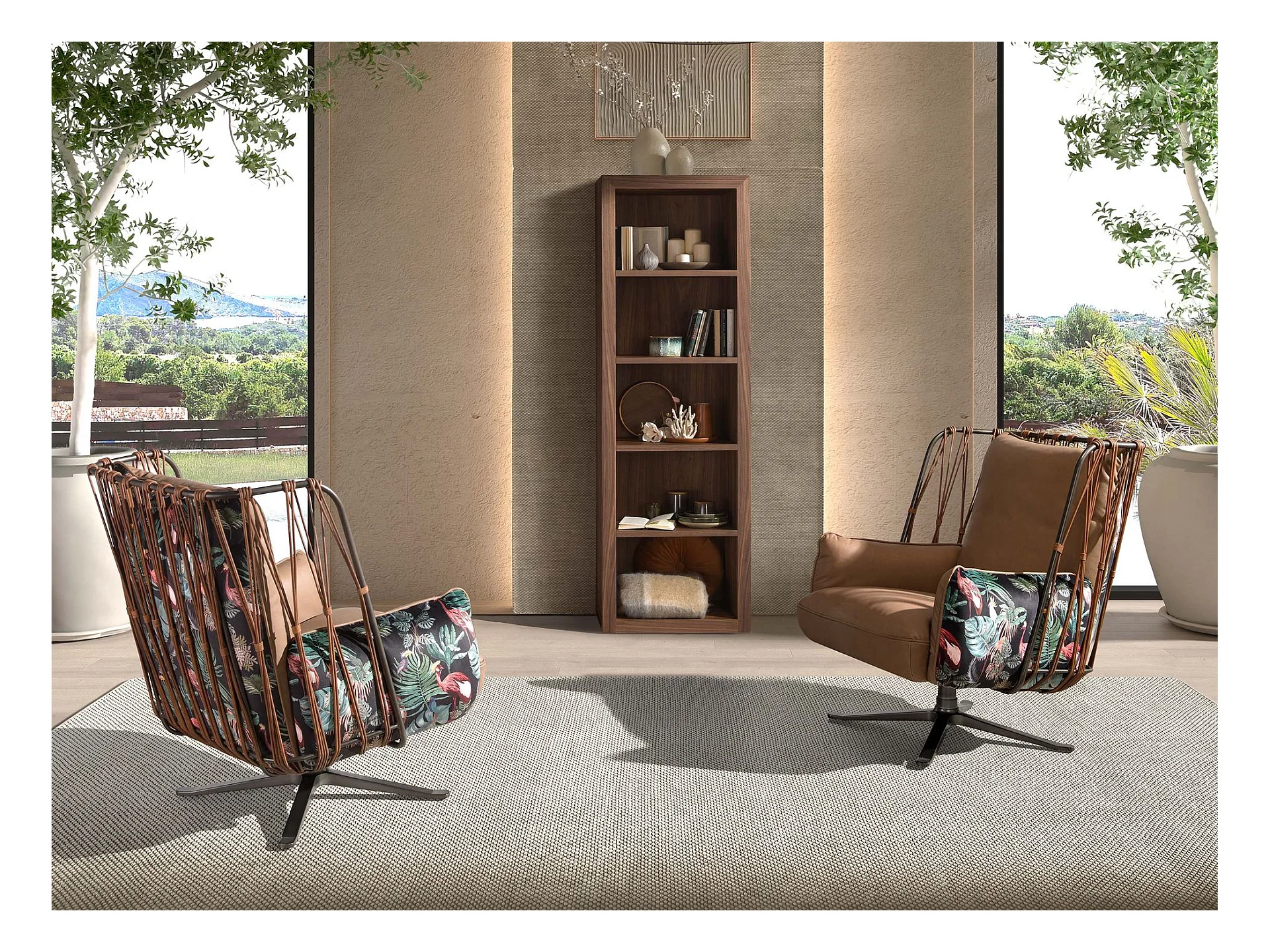 Drehsessel aus braunem Leder und Stoff mit braunem Druck 5168 ANGEL CERDA