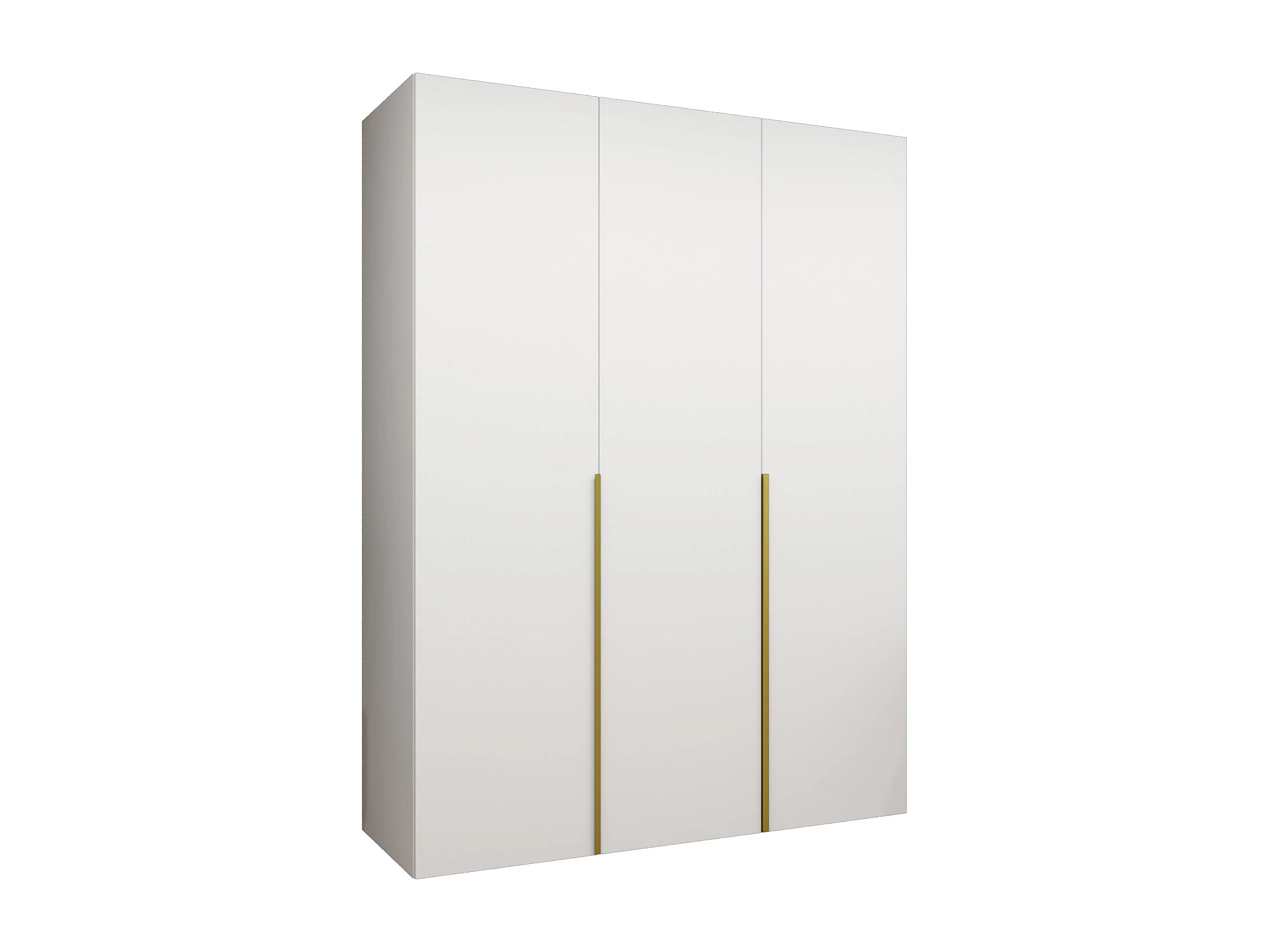 Drehtürenschrank Alicante 1 202/150/52 3-türig (Weiß + Griffe: Gold)