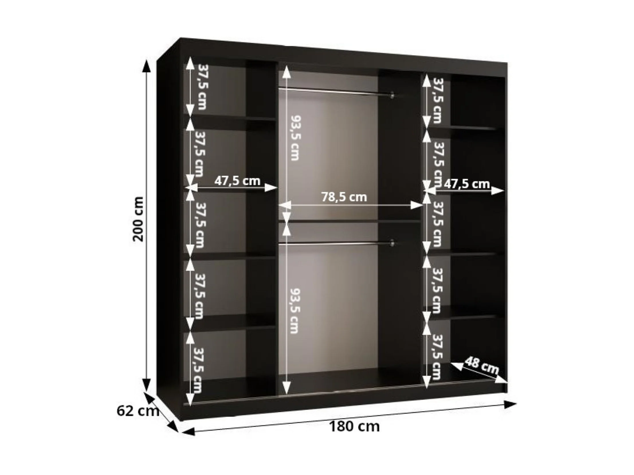 Schwebetürenschrank Rubino V1 200/180/62 2-türig (Kaschmir)