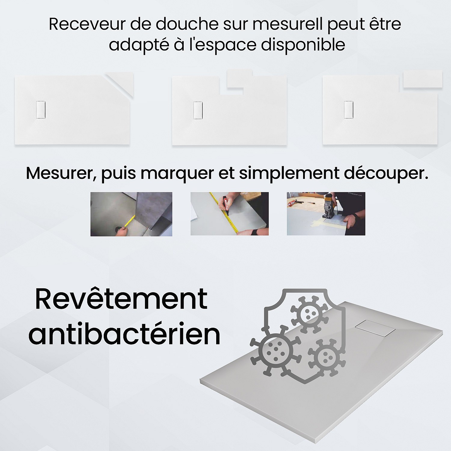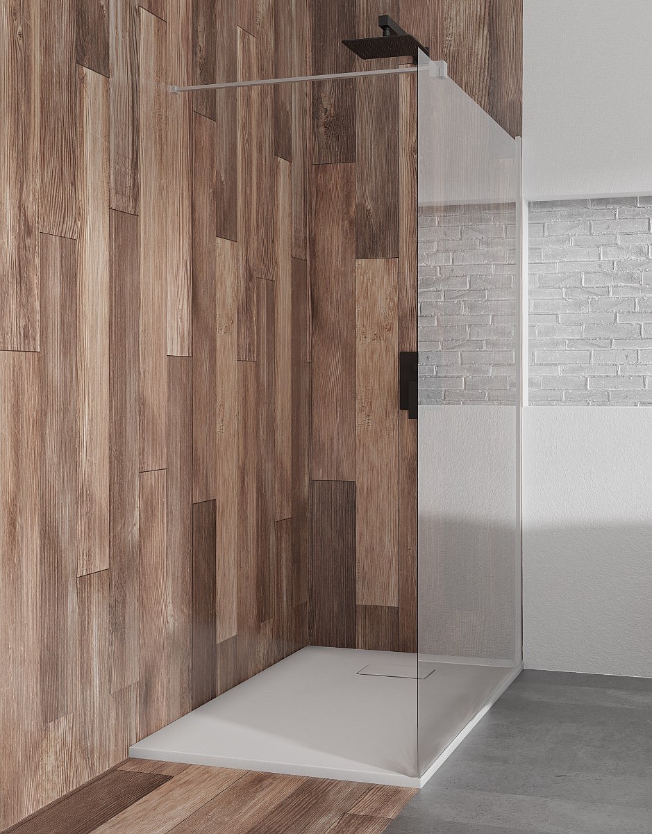 Duschwanne VIDAR 80x100 Rechteck Weiß + Walk-In Duschwand KETIL Chrom 100x195 8 mm Transparent Nano-Glas