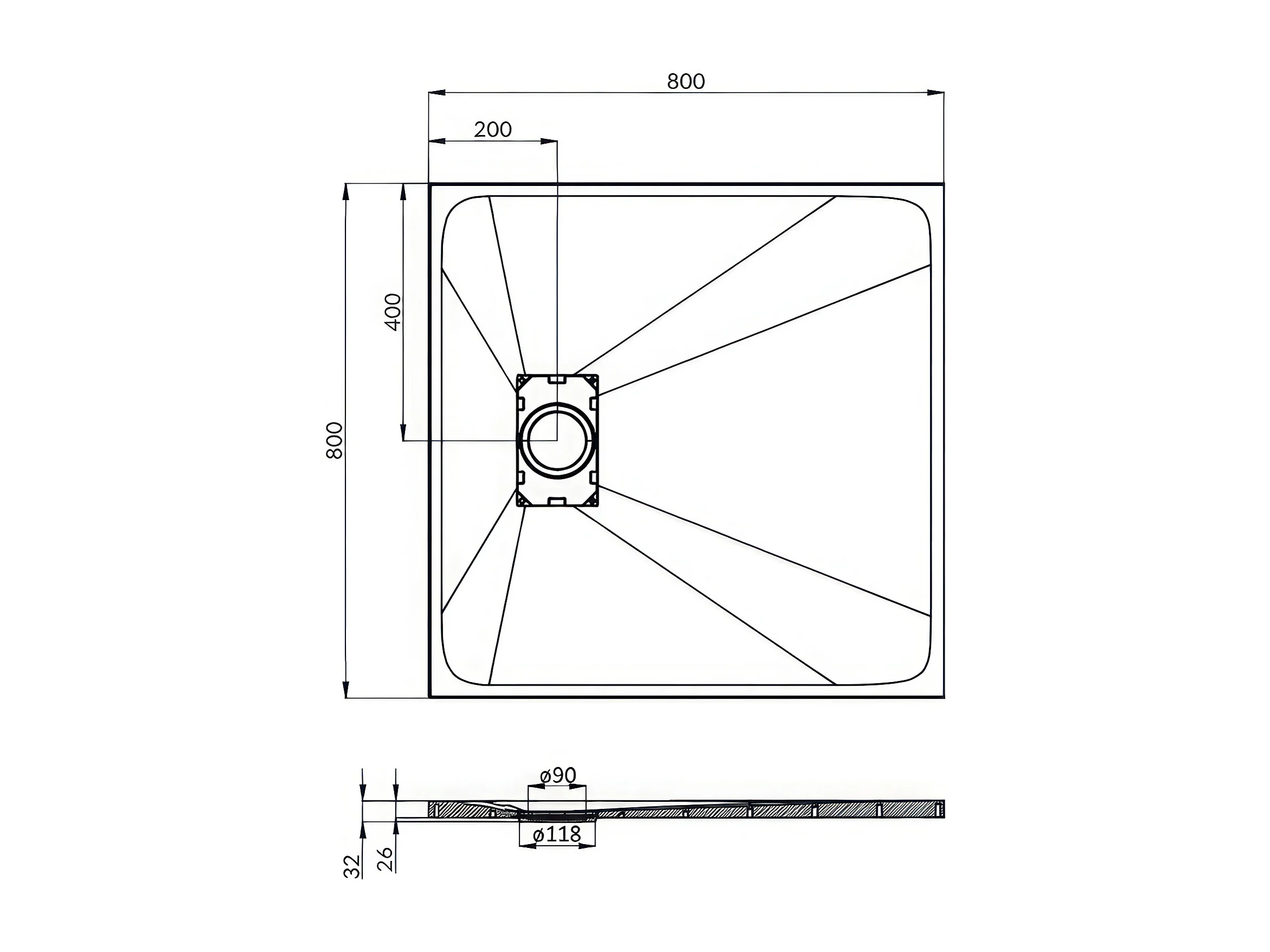 Duschwanne VIDAR 80x80 Quadratisch Schwarz + Walk-In Duschwand KETIL Schwarz 80x195 Transparentes Glas + Glaswischer
