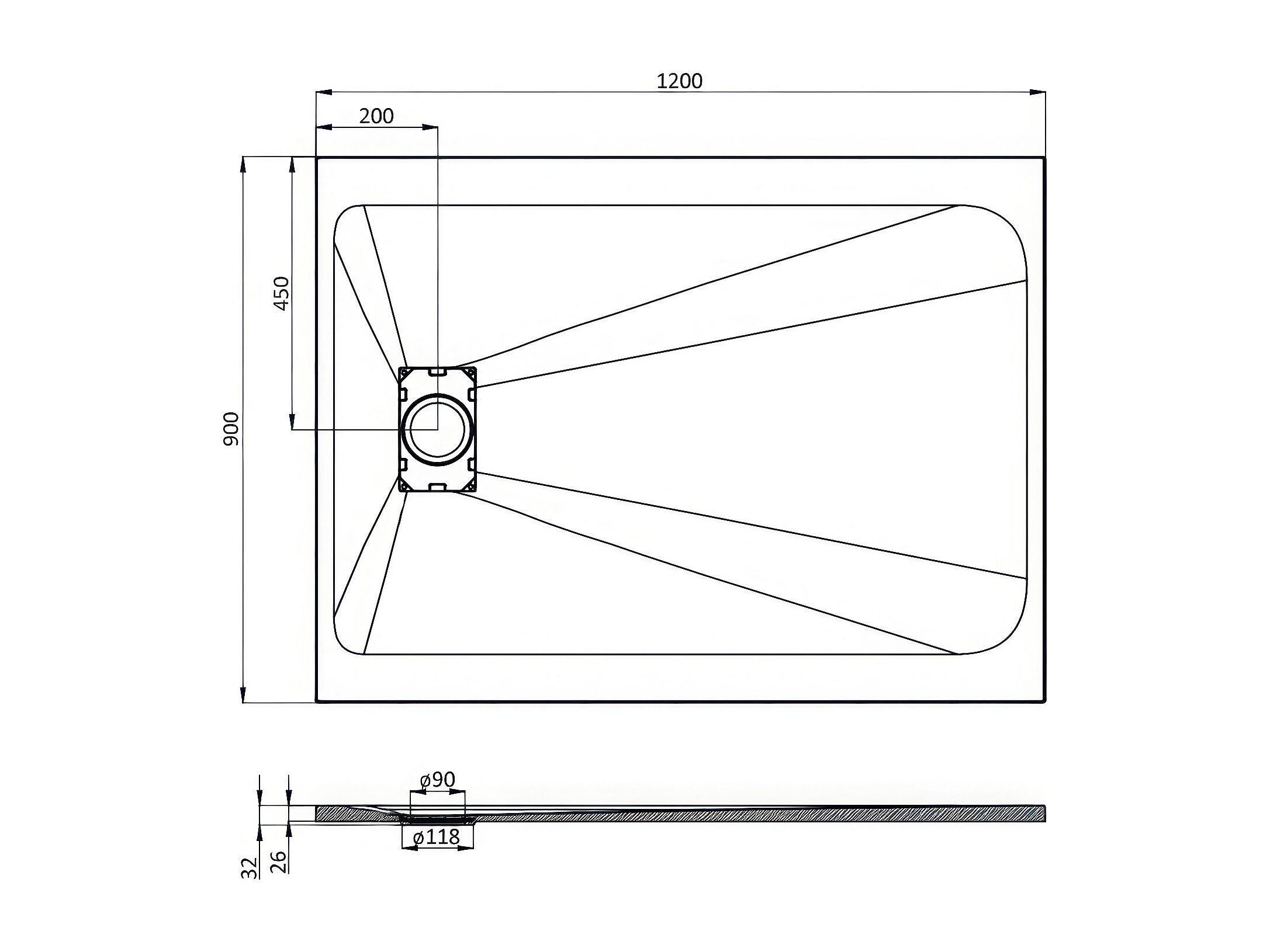 Duschwanne VIDAR 90x120 Rechteck Schwarz + Walk-In Duschwand KETIL Schwarz 120x195 Transparent Nano-Glas
