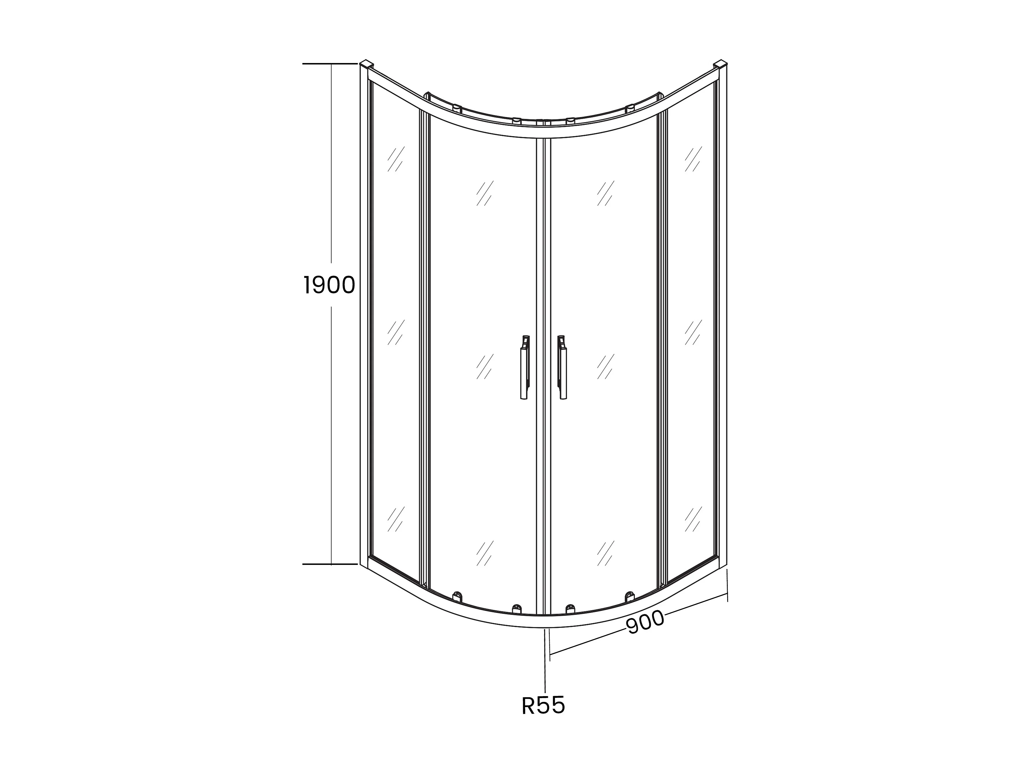 Duschwanne VIDAR 90x90 cm Weiß + Duschkabine Viertelkreis HELA Chrom 90x90 190 cm Nano-Glas Transparent Gehärtet