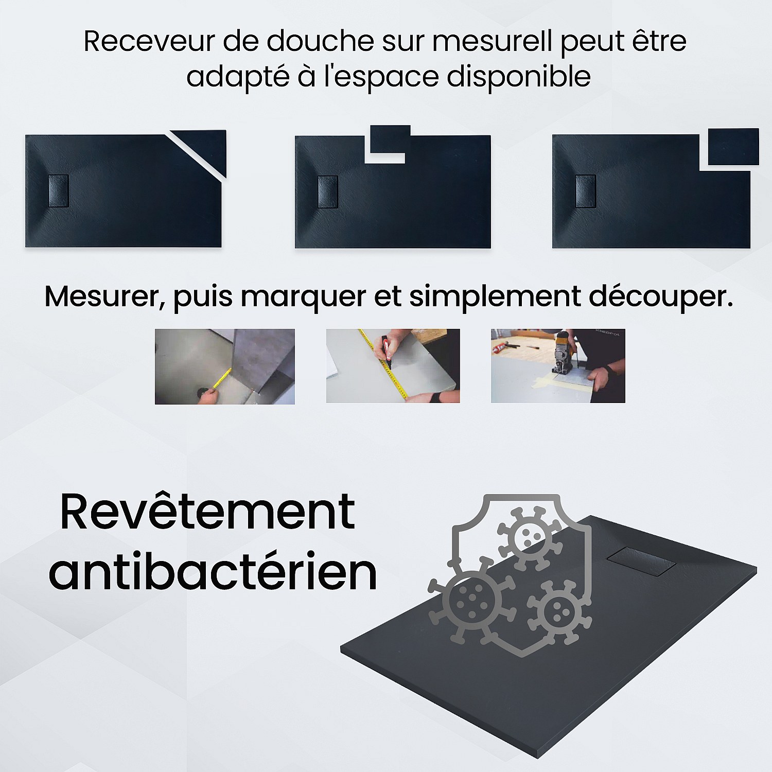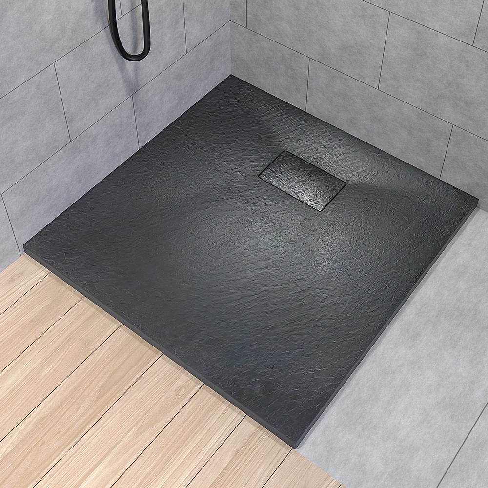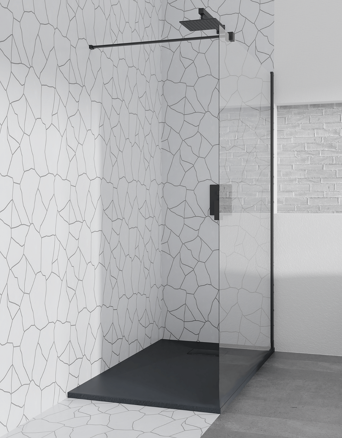 Duschwanne VIDAR 90x90 Quadratisch Schwarz + Walk-In Duschwand KETIL Schwarz 90x195 8 mm Transparent Nano-Glas