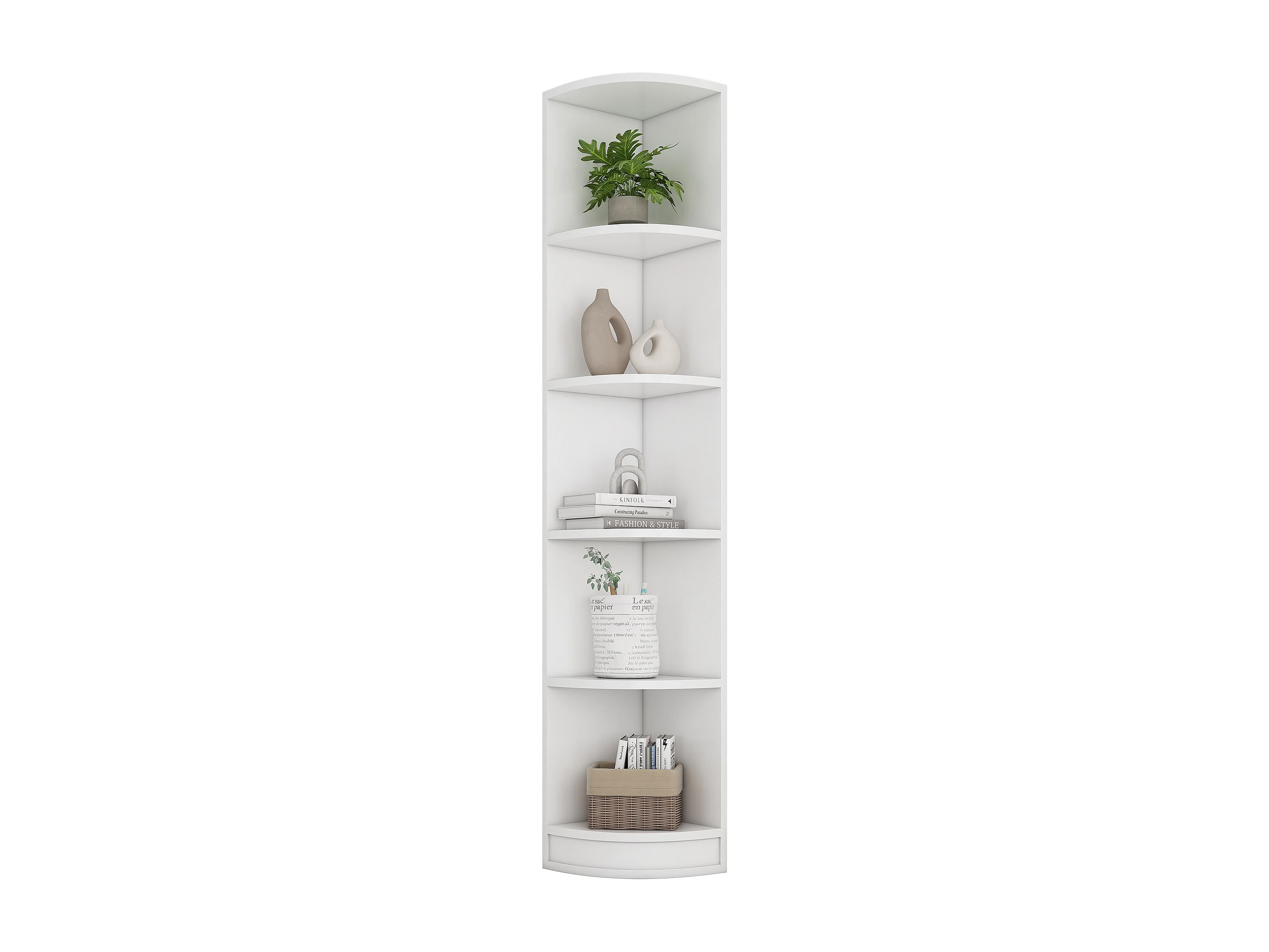 Eckbücherregal - 42 x 30 x 180 cm - fünfschichtige Aufbewahrung - einfache Form - MDF - weiß