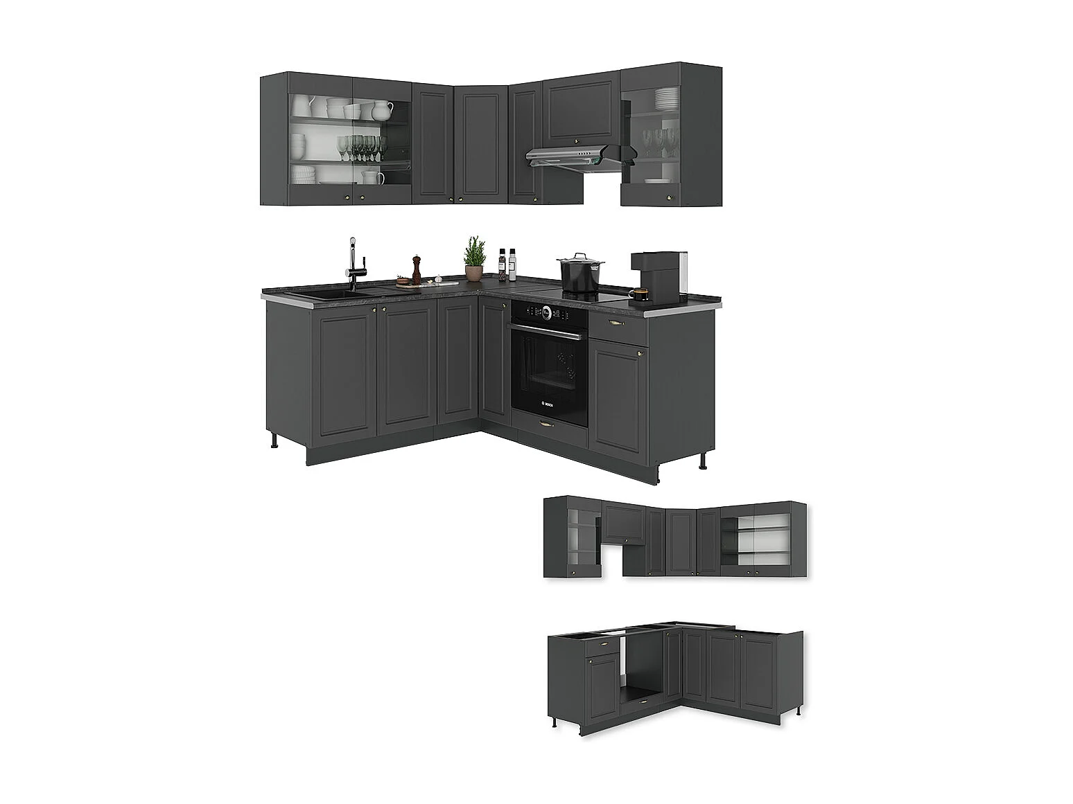Eckküche anthrazit-gold landhaus 190x60x81.6 fame-line