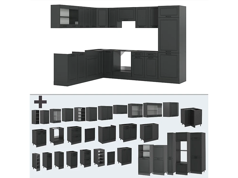 Eckküche anthrazit landhaus/anthrazit 287x60x81.6 r-line