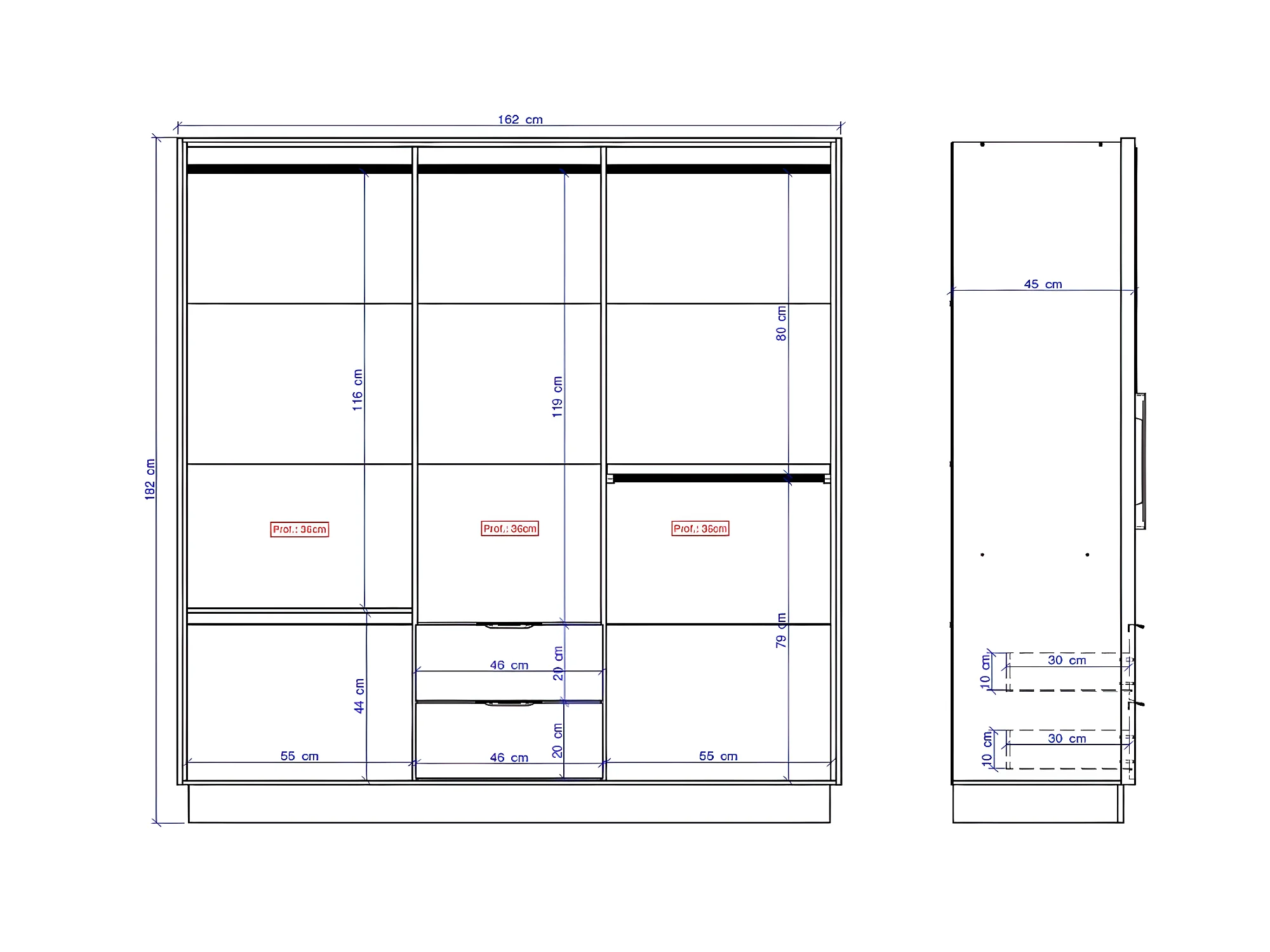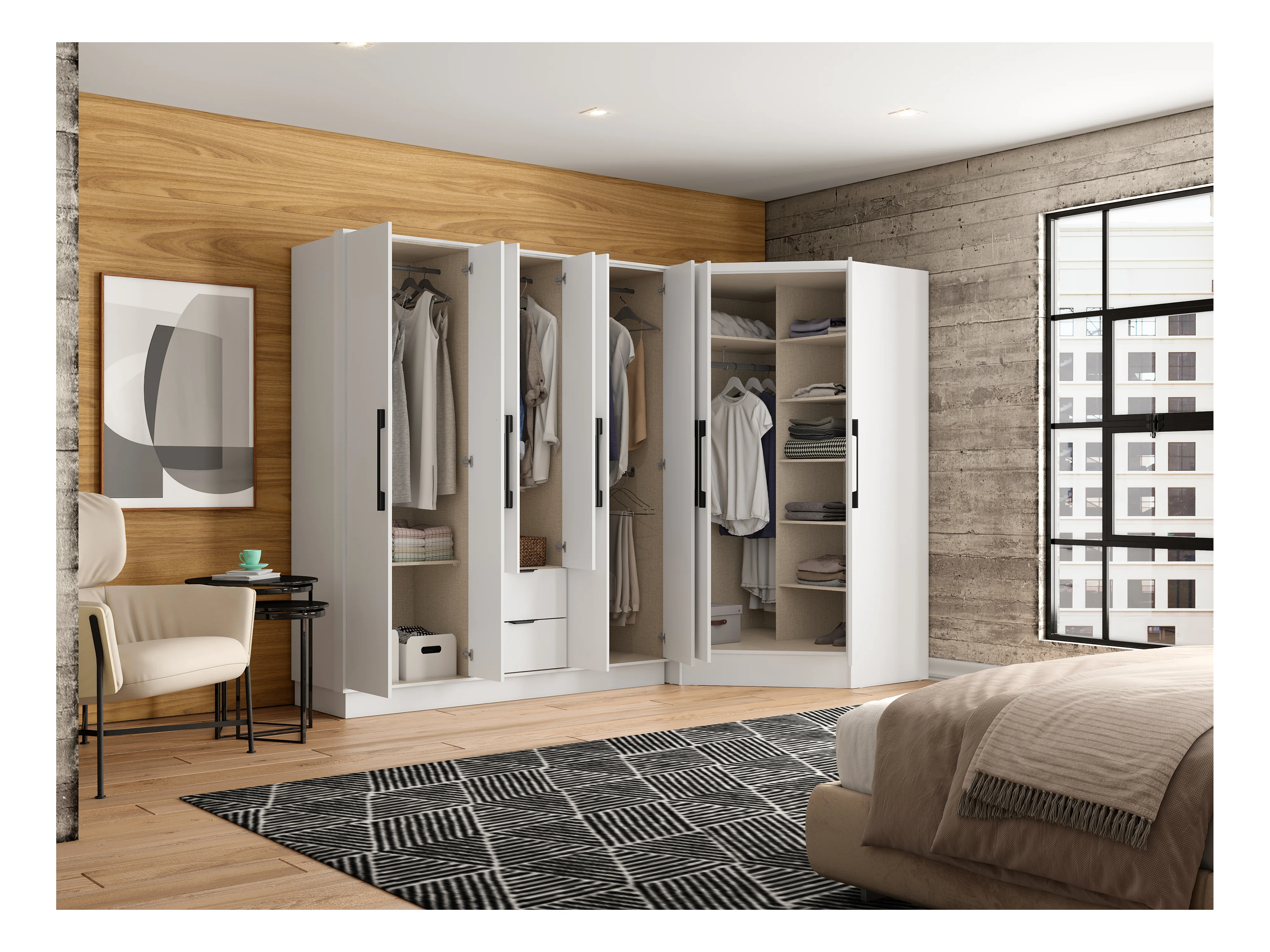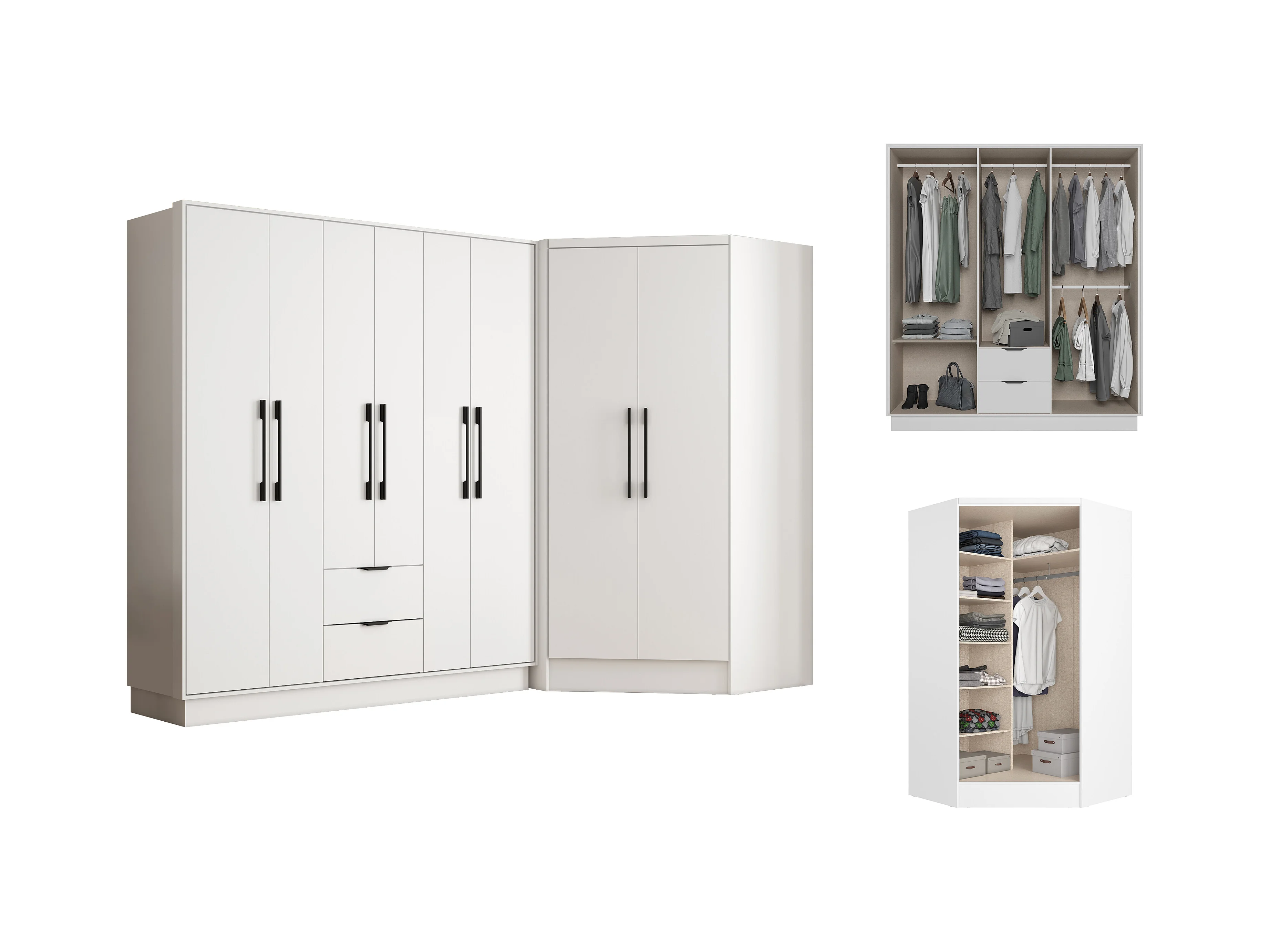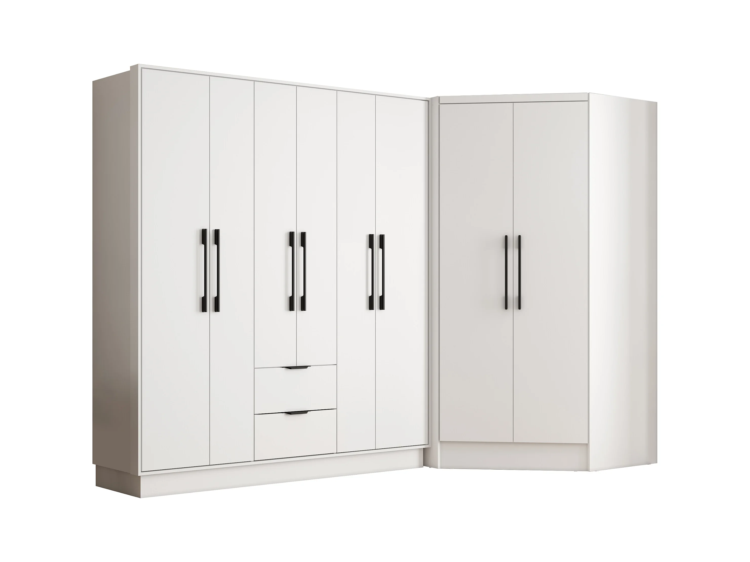 Eckkleiderschrank mit 8 Türen & 2 Schubladen - 263 cm - Weiß - FEOVA