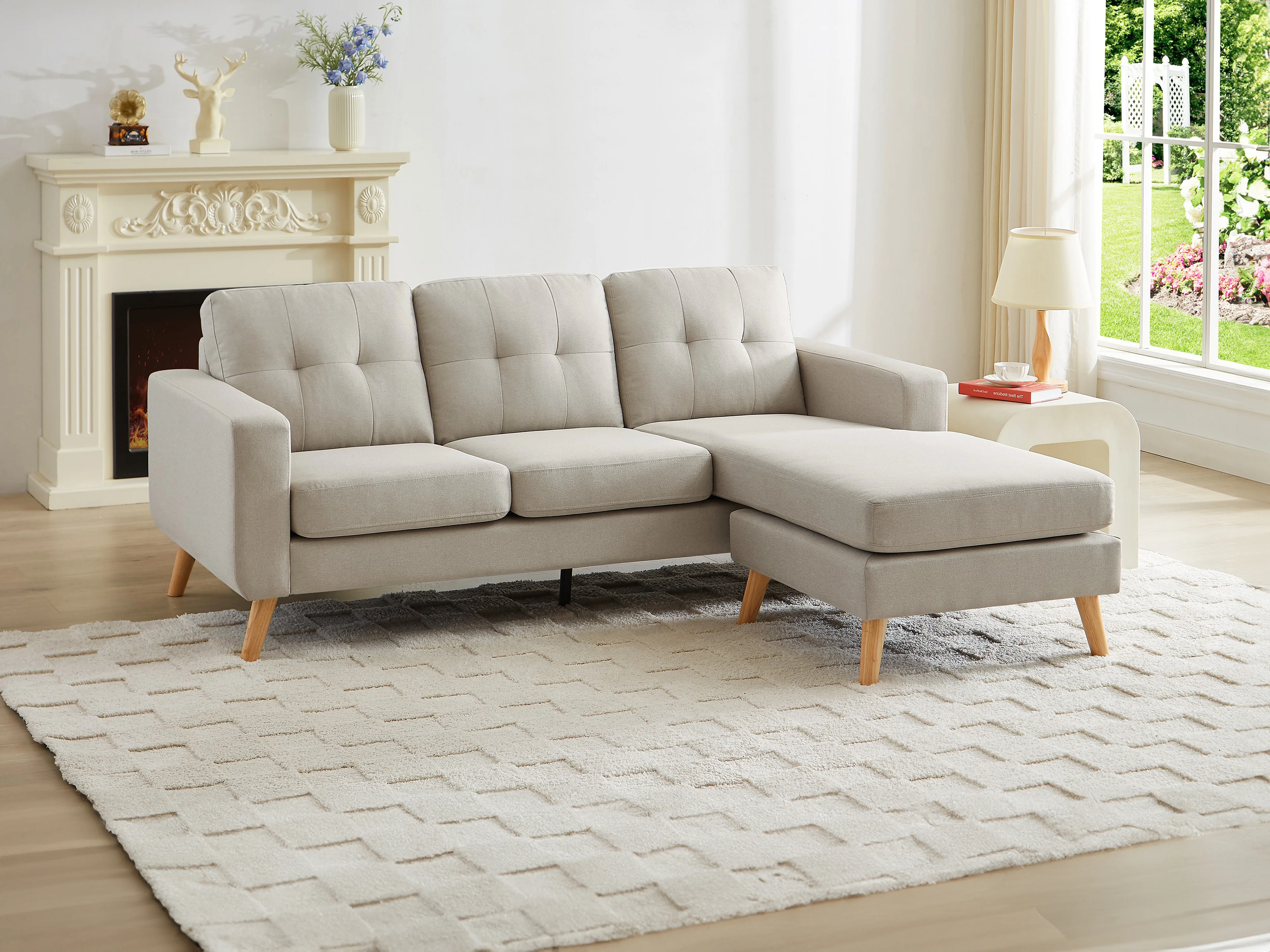 Ecksofa - Ecke wechselbar - Stoff - Beige - BARTOLOME