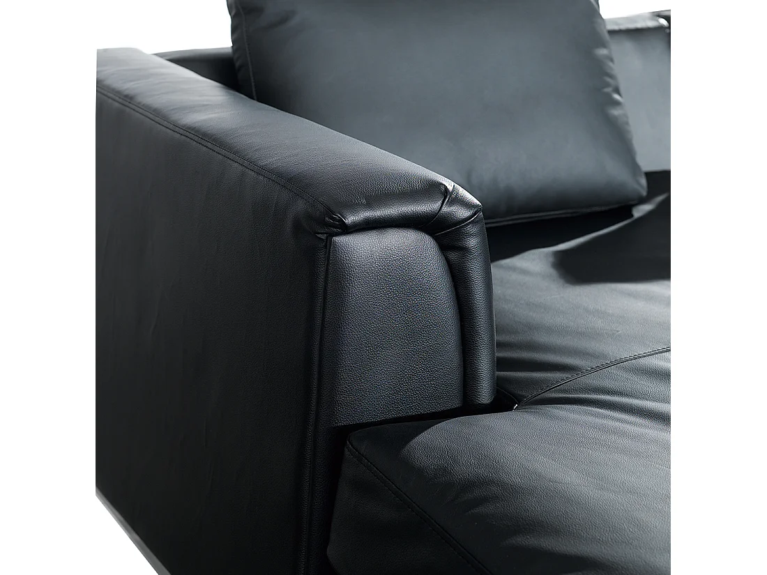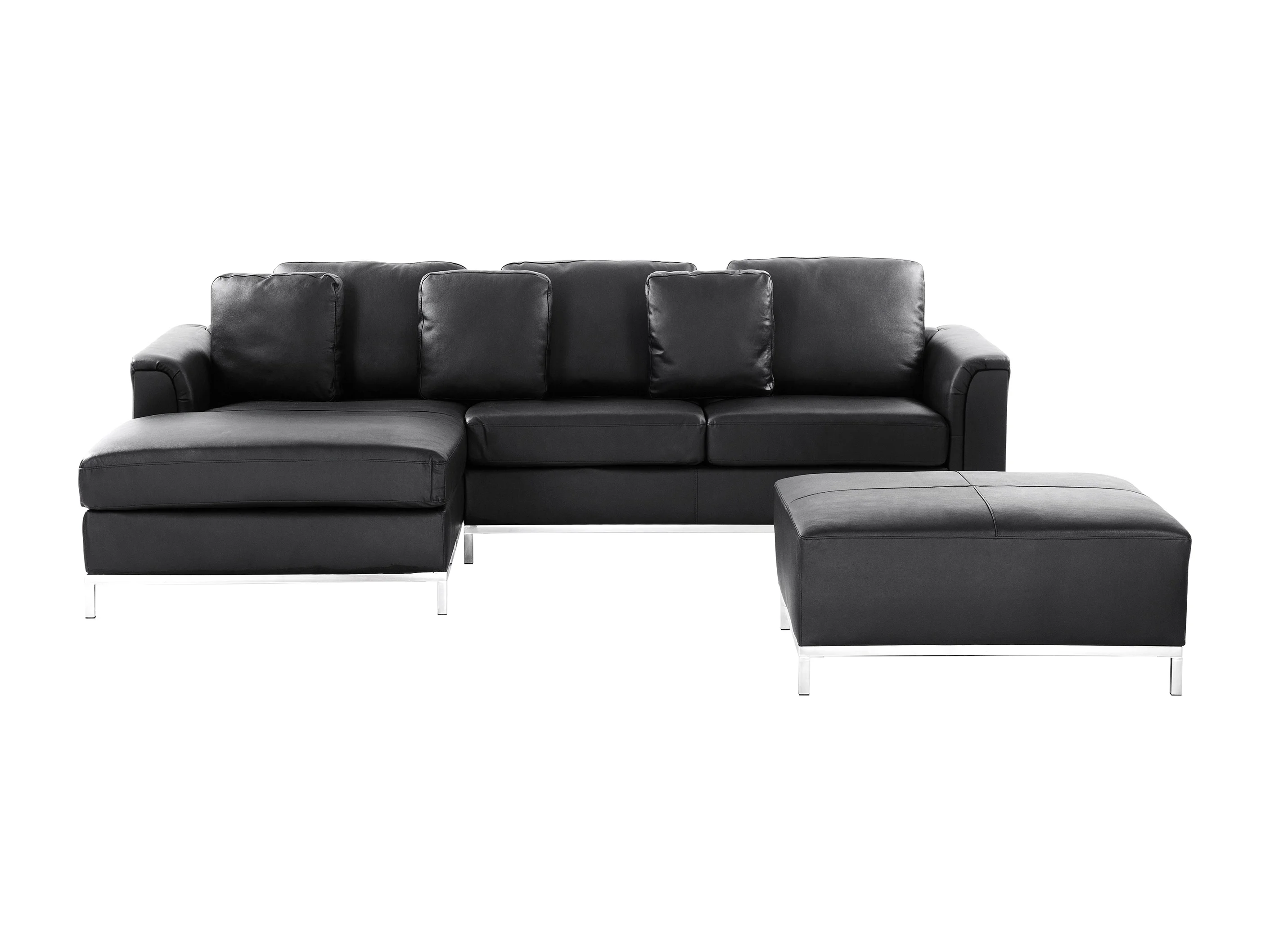 Ecksofa OSLO Echtleder Schwarz mit Ottomane 5-Sitzer rechtsseitig