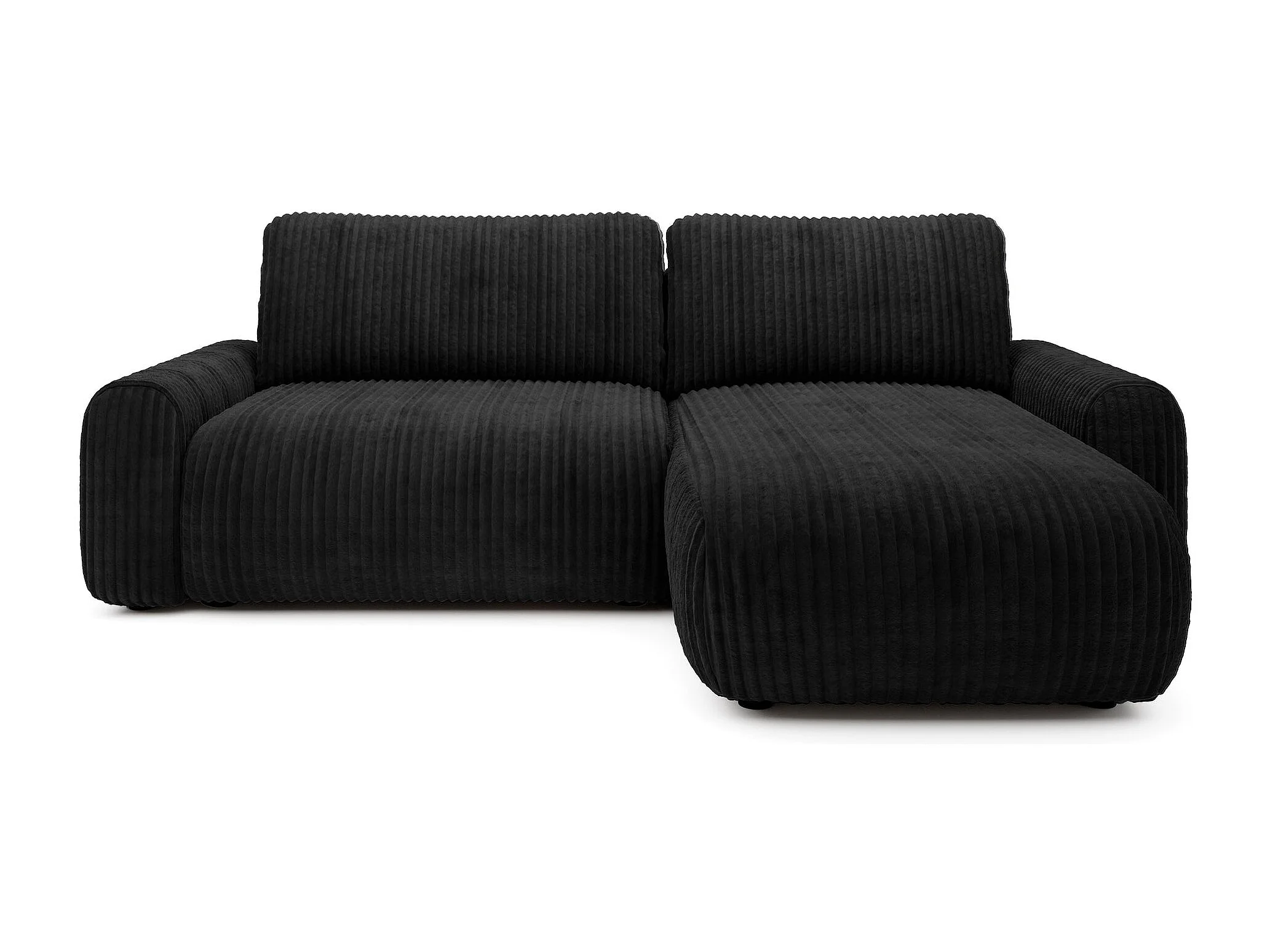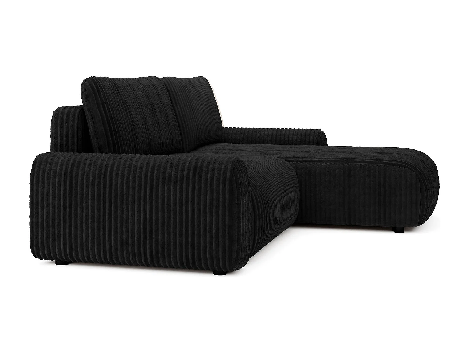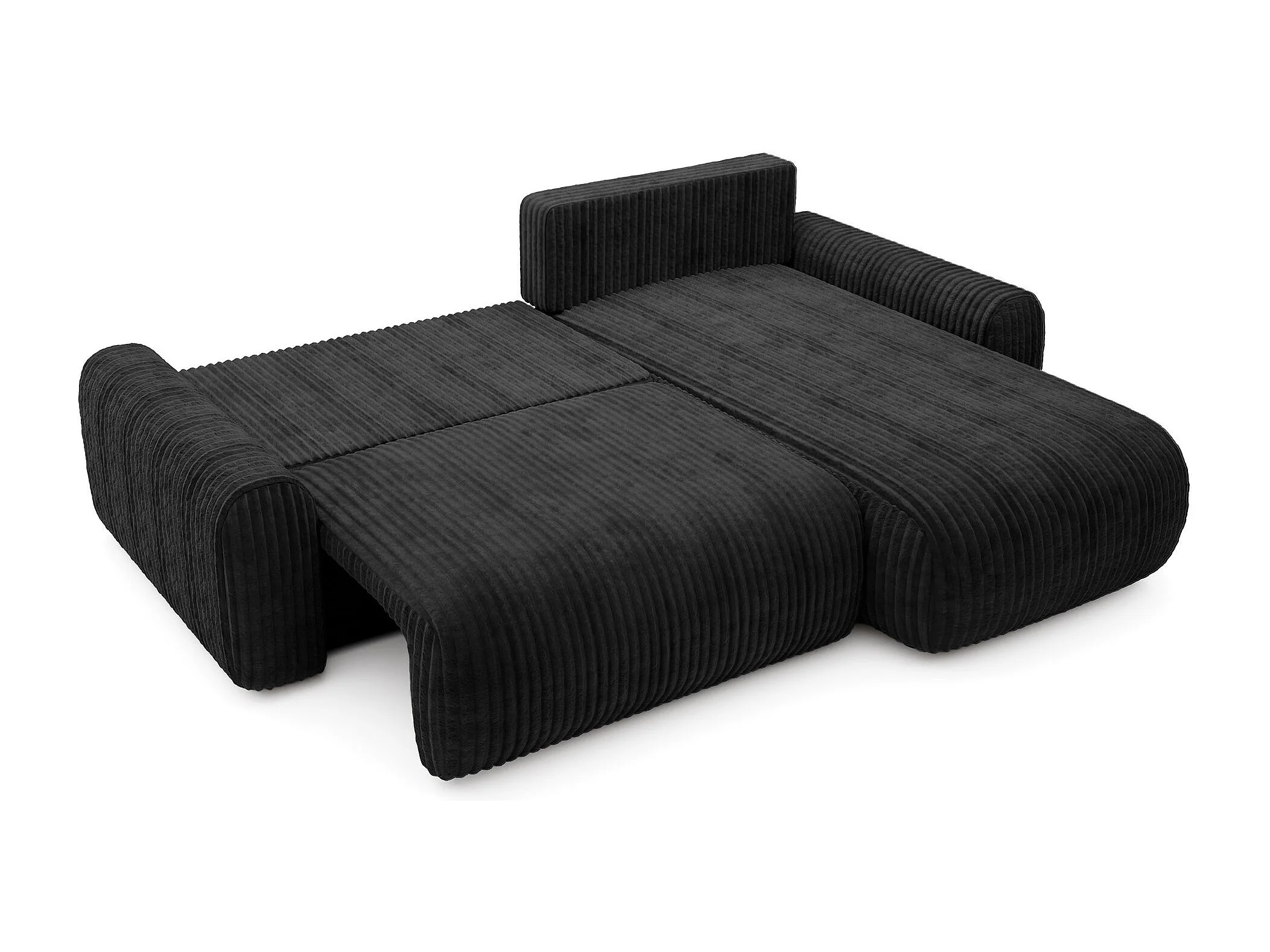 Ecksofa mit Cordbezug – Schlaffunktion und Bettkasten – Schwarz – beidseitig – LELU