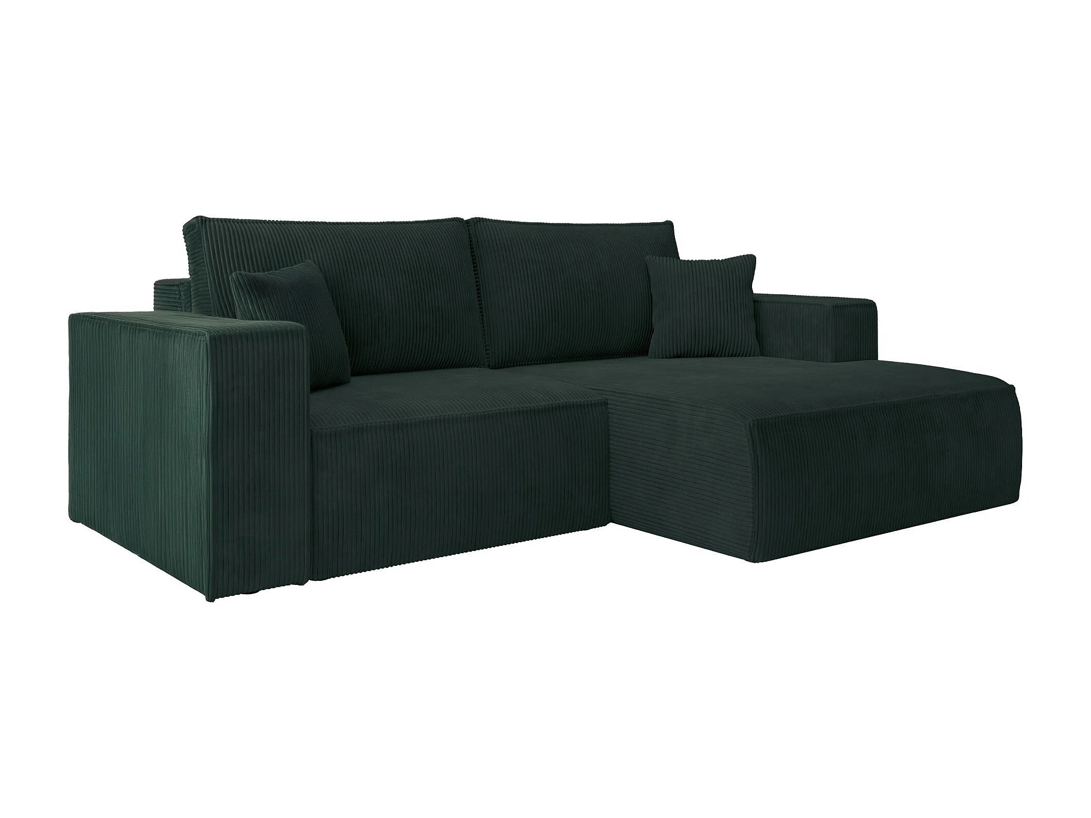 Ecksofa mit Cordbezug – Schlaffunktion und Stauraum – Dunkelgrün – rechts – FARESE MINI