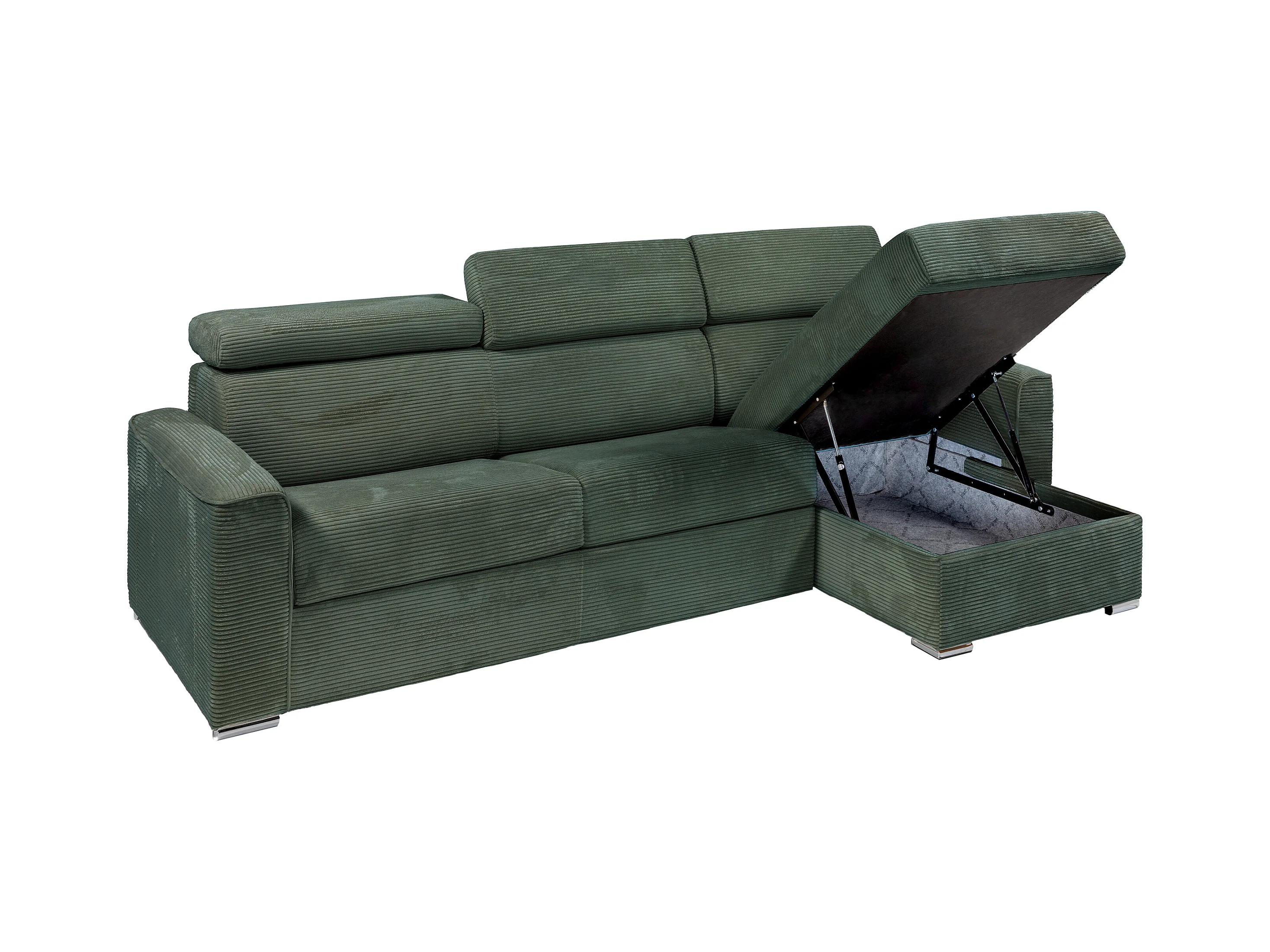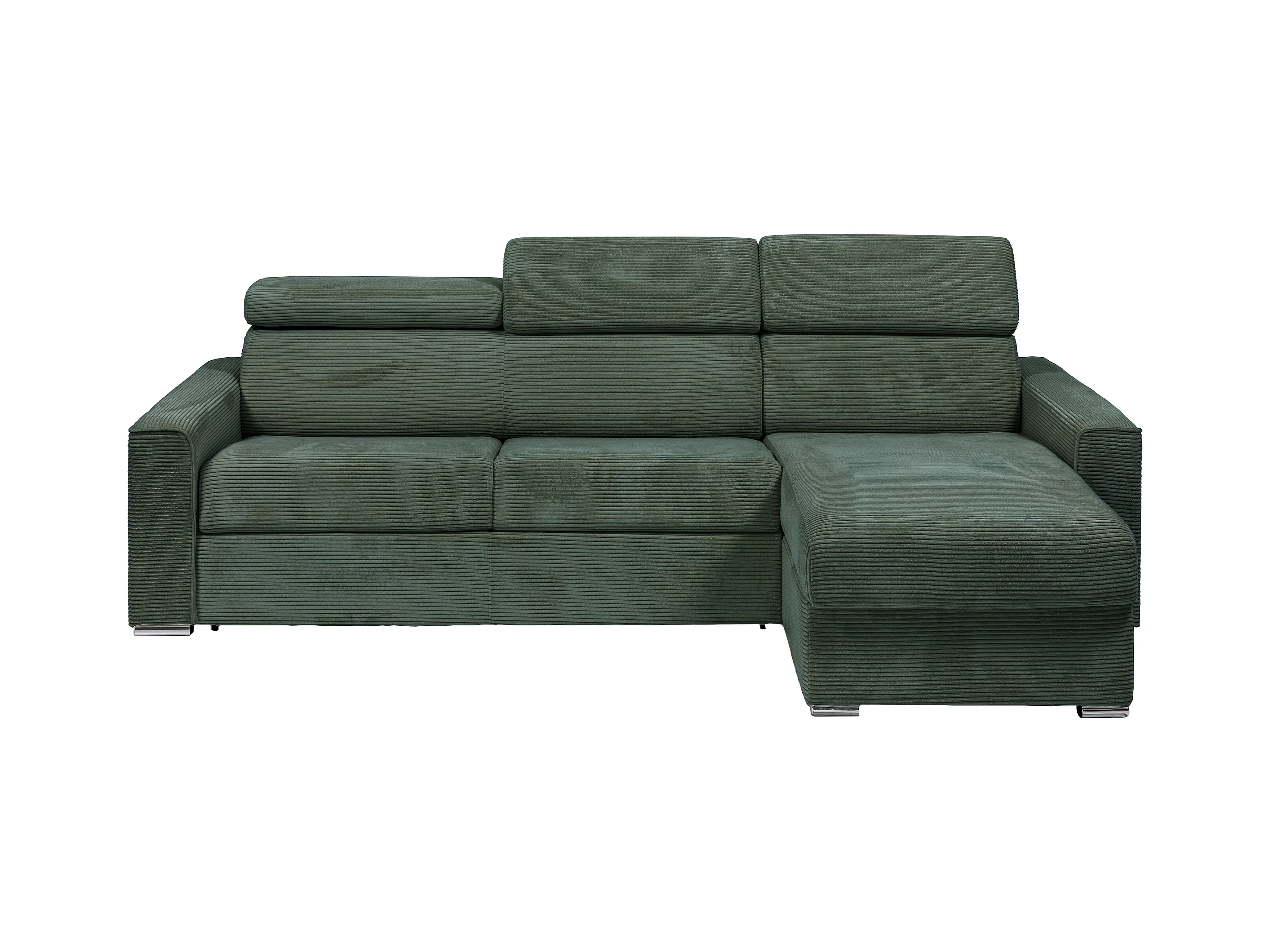 Ecksofa mit Matratze - Ecke wechselbar - Cord - Grün - Liegefläche mit Lattenrost mit breiten Latten 140 cm - Matratze 18 cm - VIZIR