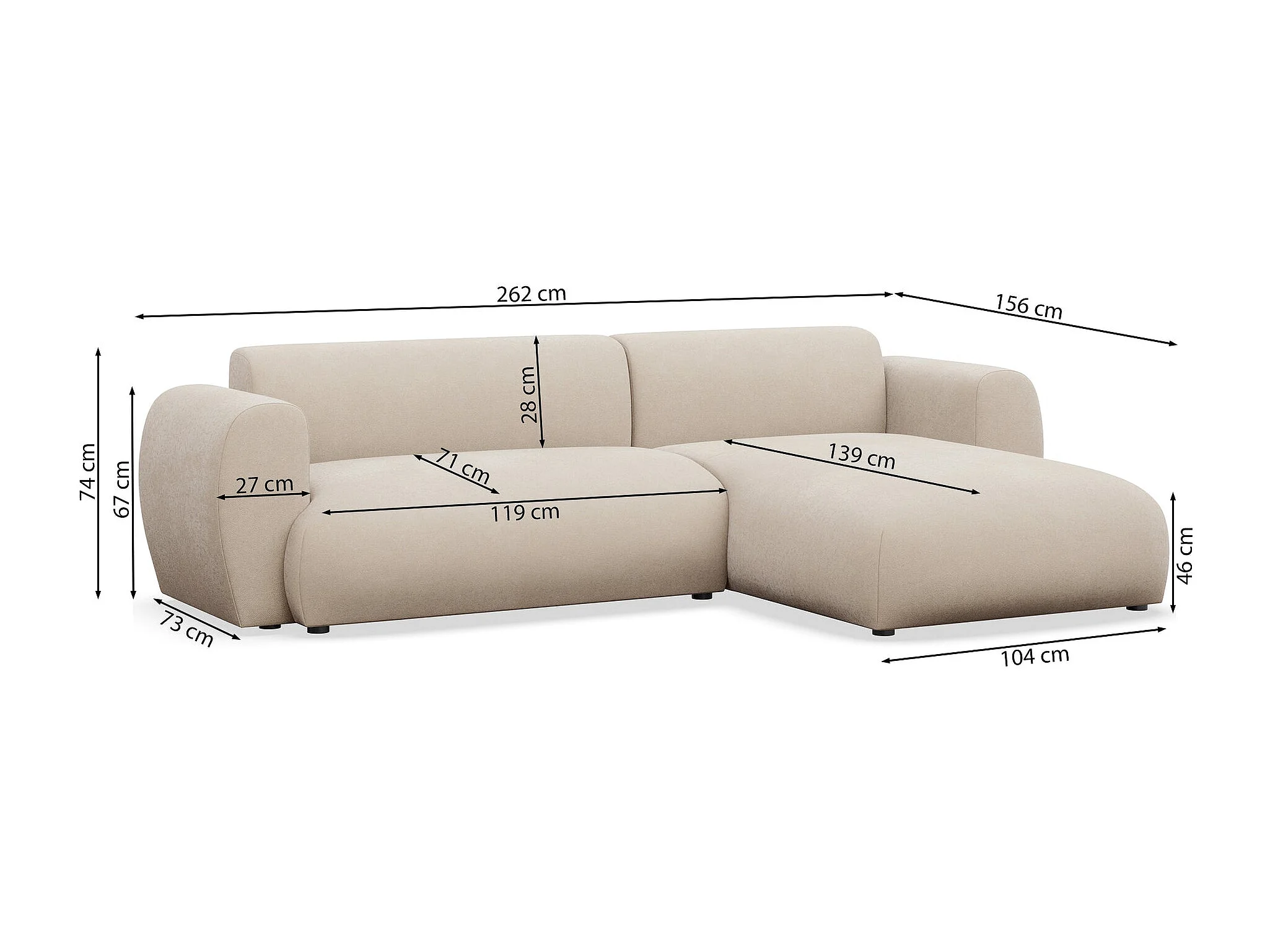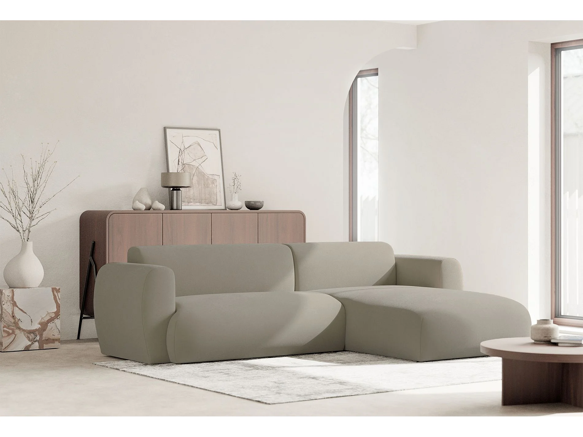 Ecksofa mit pflegeleichtem Chenillebezug – Schlaffunktion – Greige – rechts – EMIA