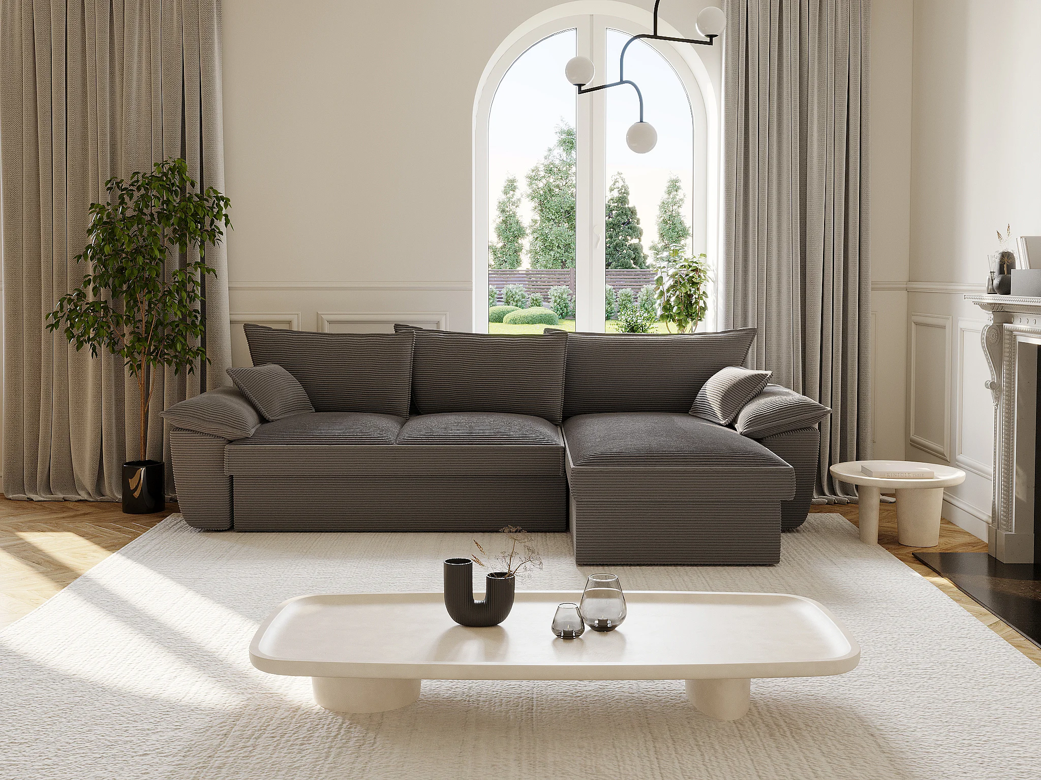 Ecksofa mit Schlaffunktion + Bettkasten - Ecke rechts - Cord - Dunkelgrau - GUILLERMO