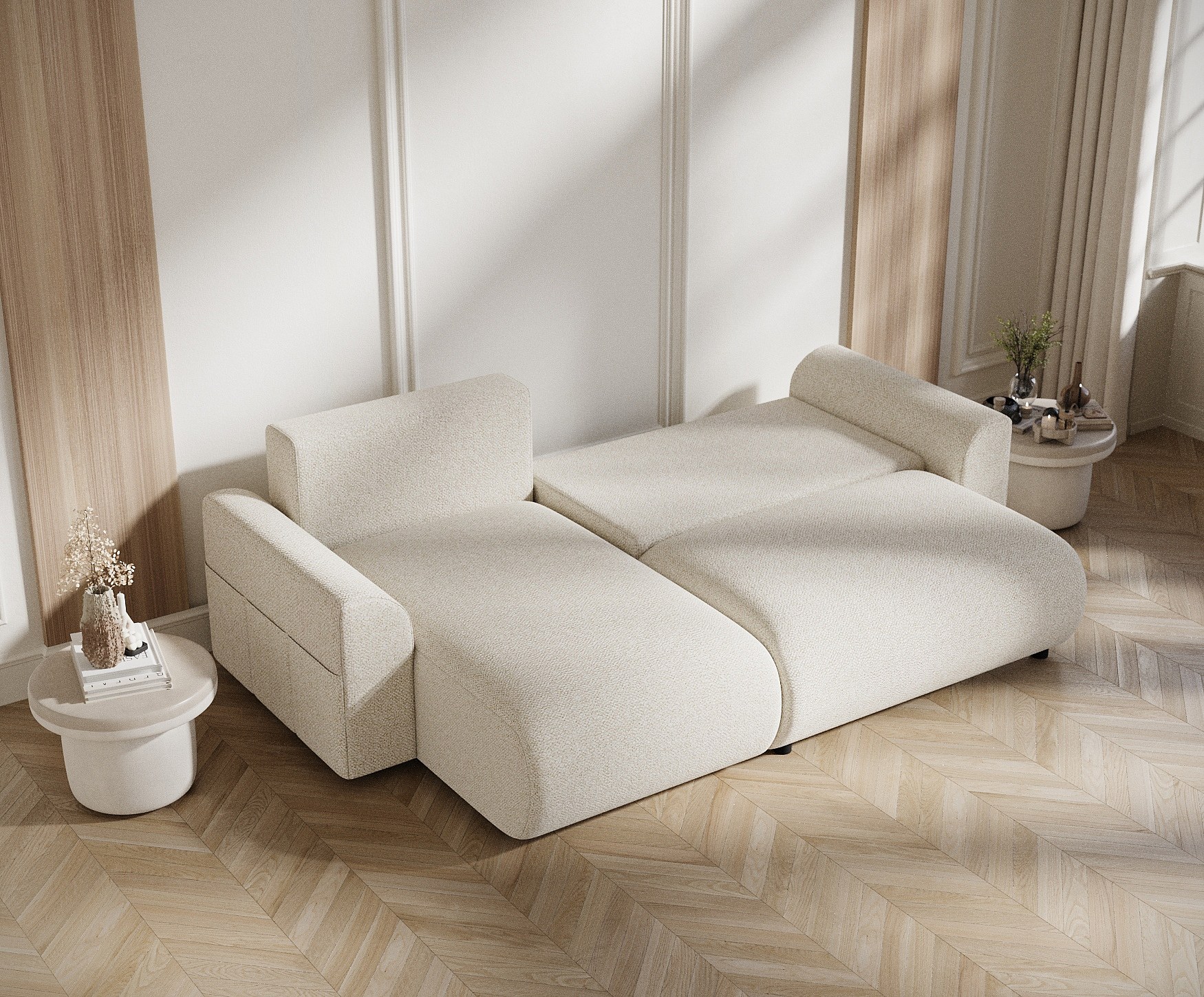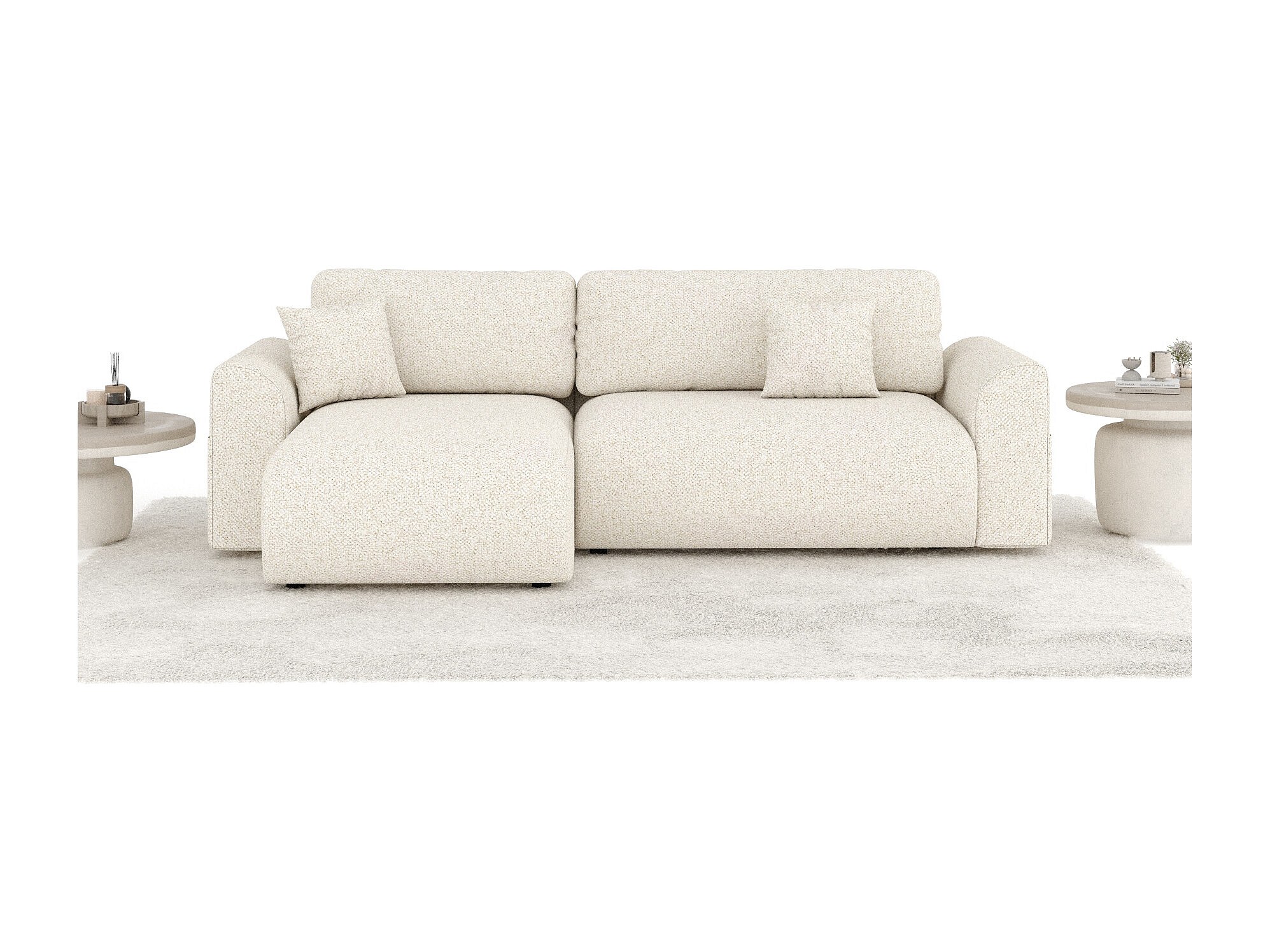 Ecksofa mit Schlaffunktion Ucci - Boucle-Stoff - Vier-Personen - creme
