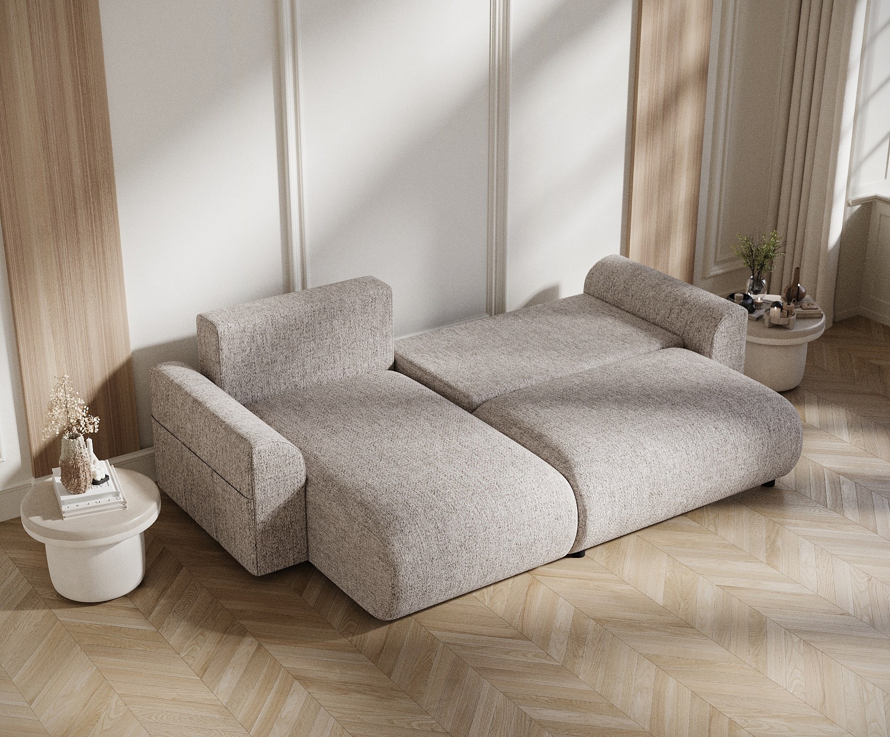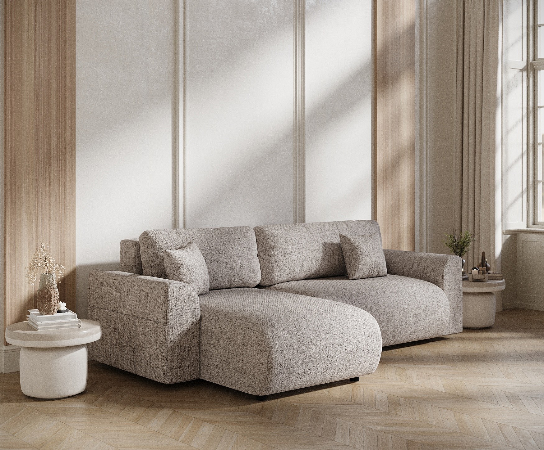 Ecksofa mit Schlaffunktion Batu - Webstoff - Drei-Personen - beige melange
