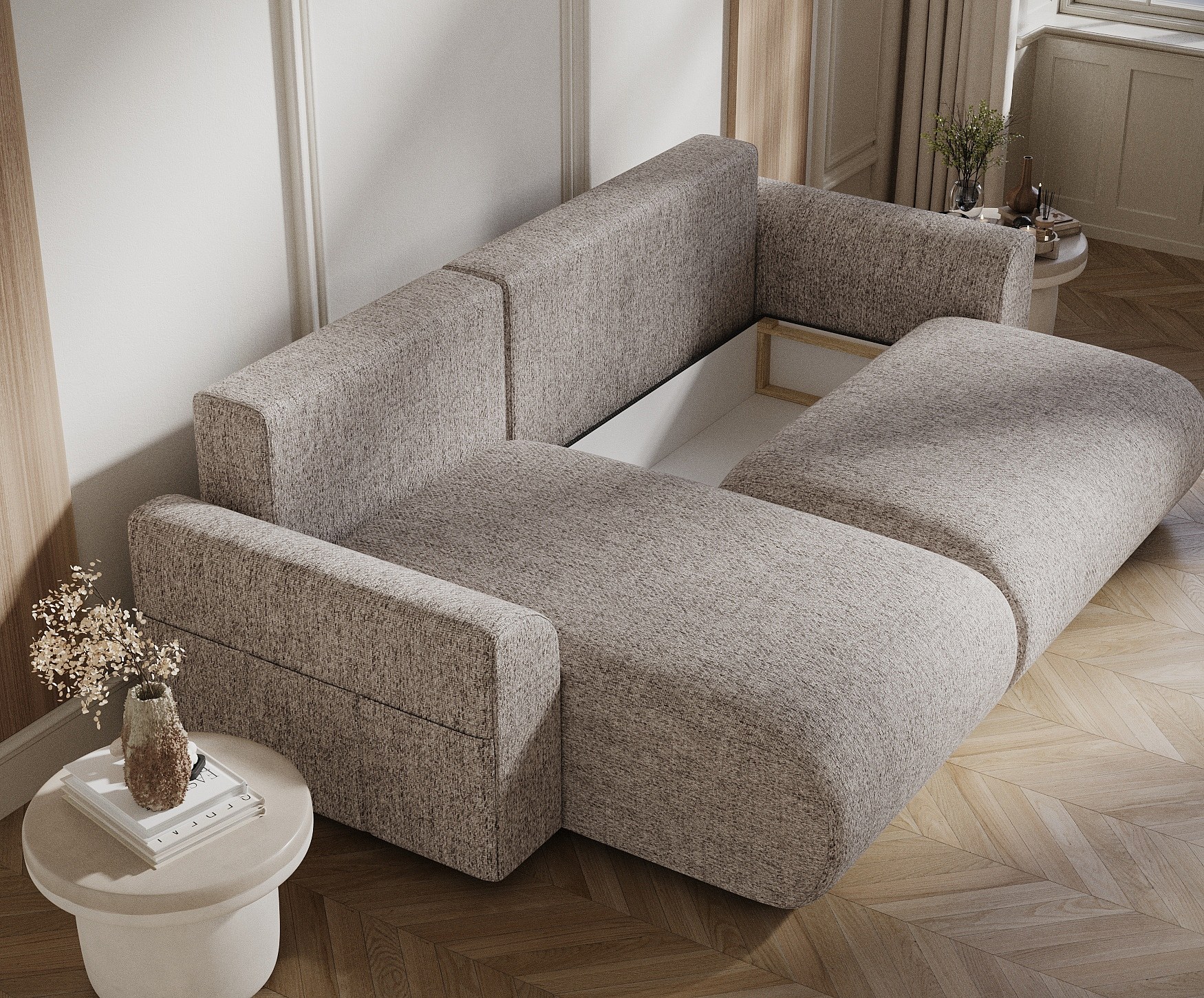 Ecksofa mit Schlaffunktion - Stauraum - Bouclé-Bezug - hellbraun - Pianoni