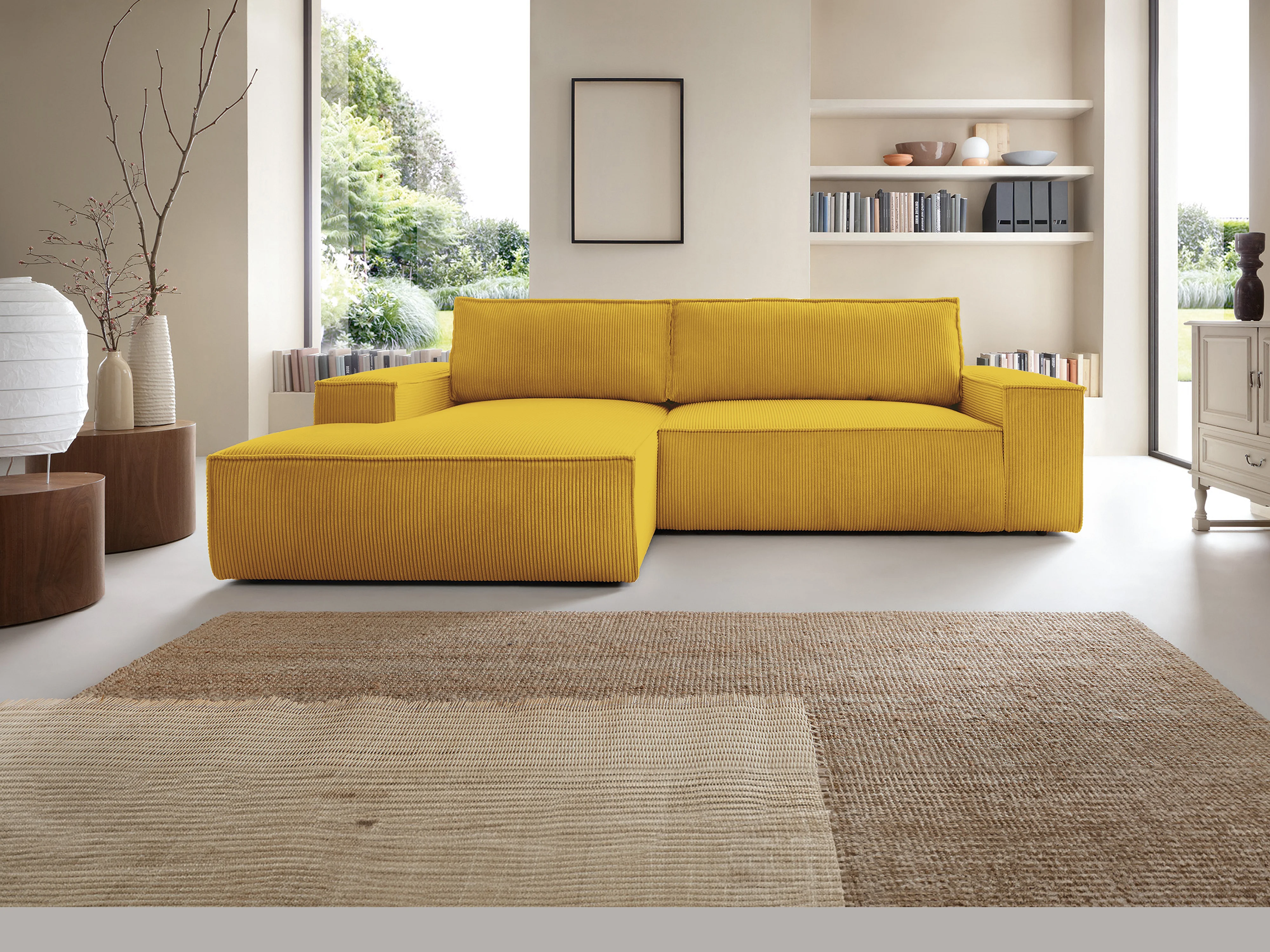Ecksofa mit Schlaffunktion - Ecke links - Cord - Gelb - AMELIA