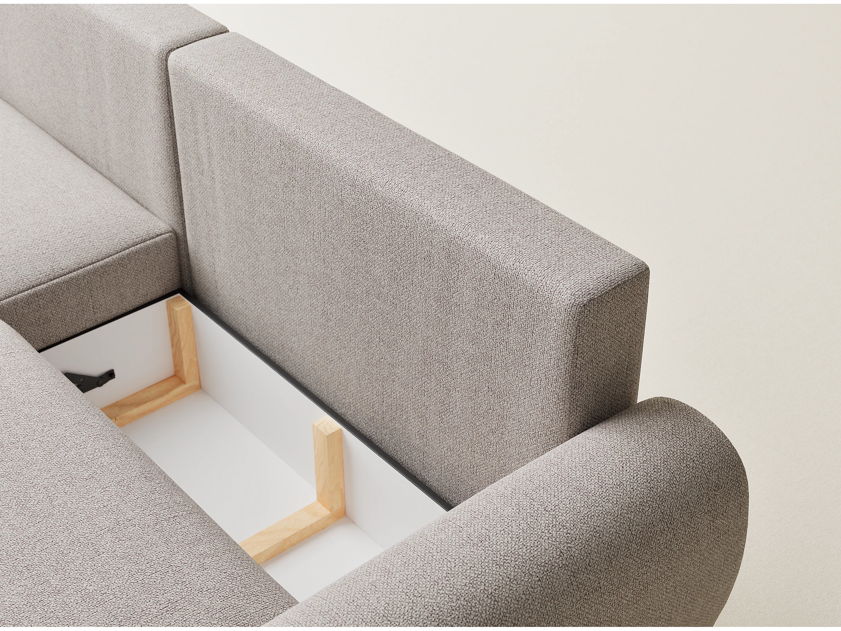 Ecksofa mit Schlaffunktion Numba aus Webstoff - Drei-Personen - hellbeige