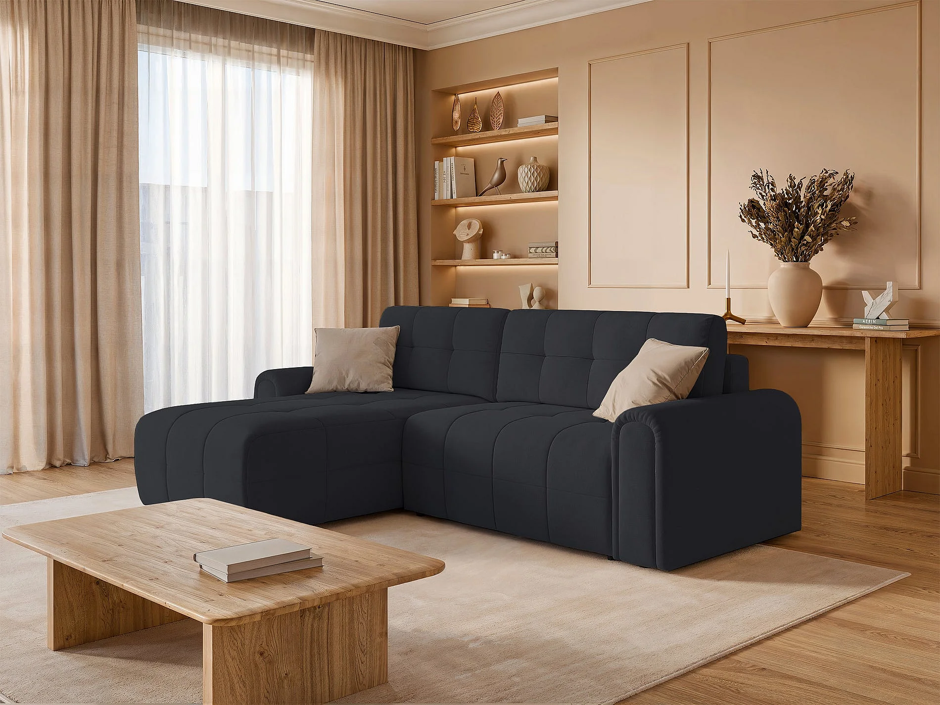 Ecksofa mit Schlaffunktion und Stauraum – links – Chenille – Anthrazit – SIMOLLA