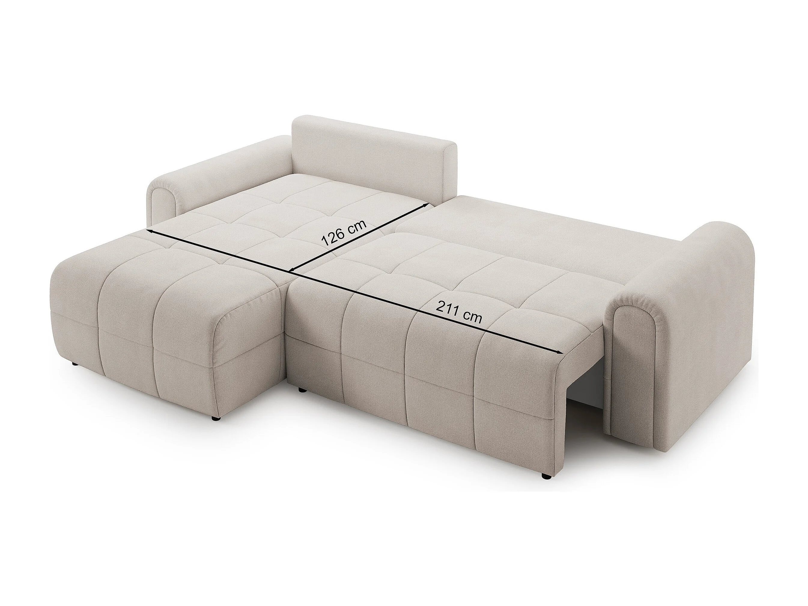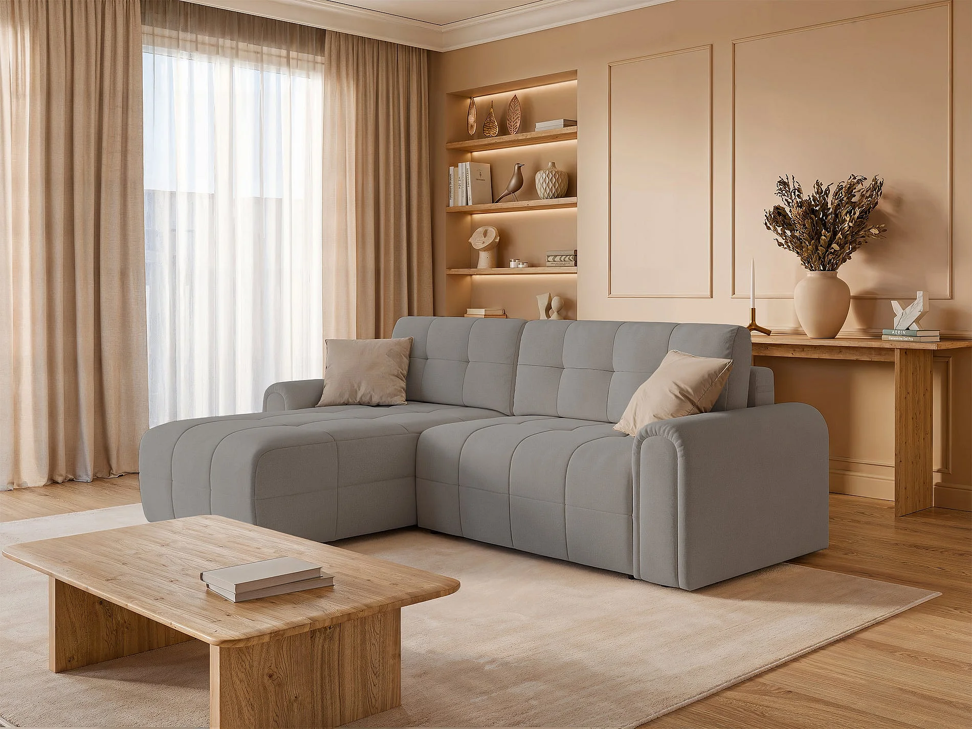 Ecksofa mit Schlaffunktion und Stauraum – links – Chenille – Greige – SIMOLLA