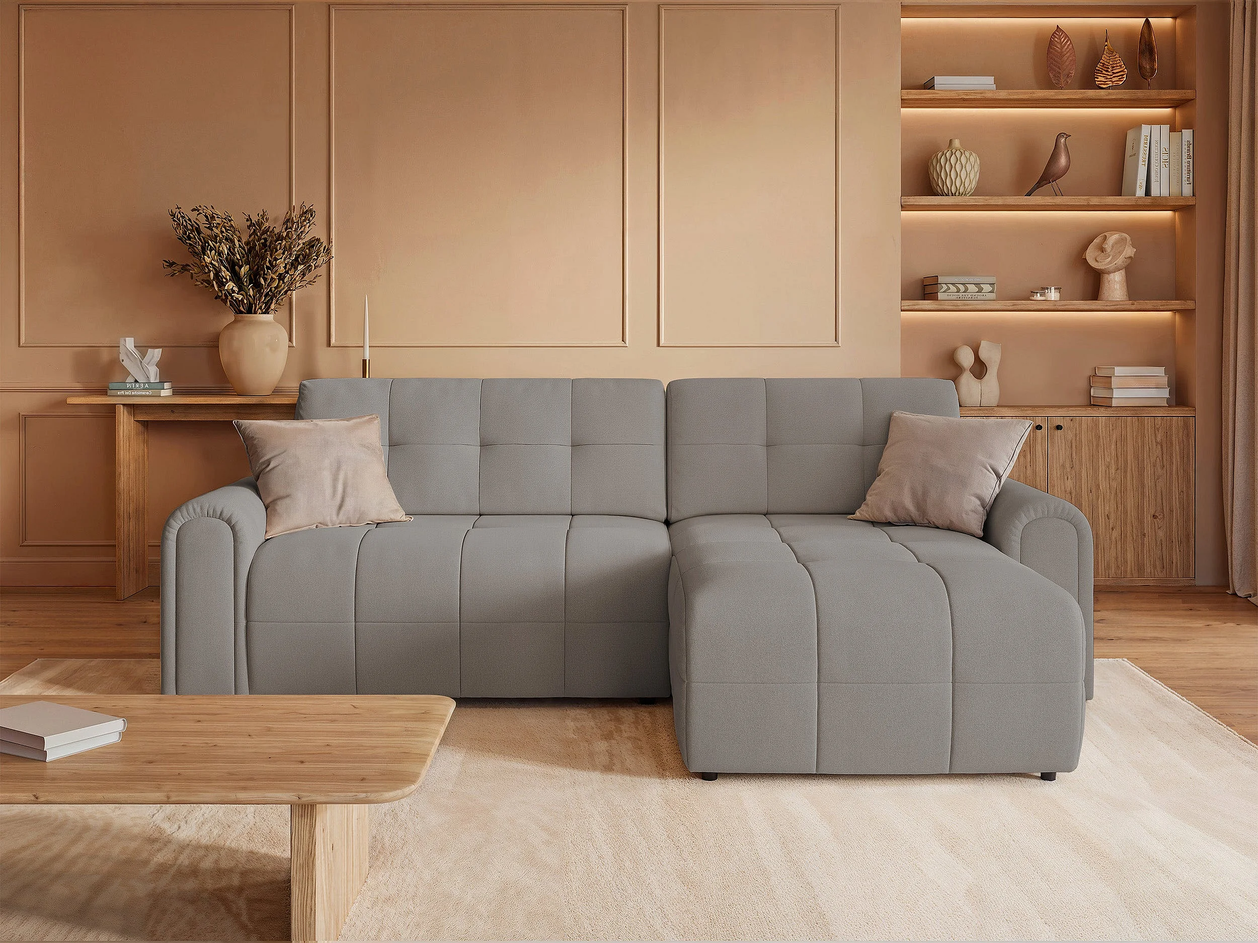 Ecksofa mit Schlaffunktion und Stauraum – rechts – Chenille – Greige – SIMOLLA