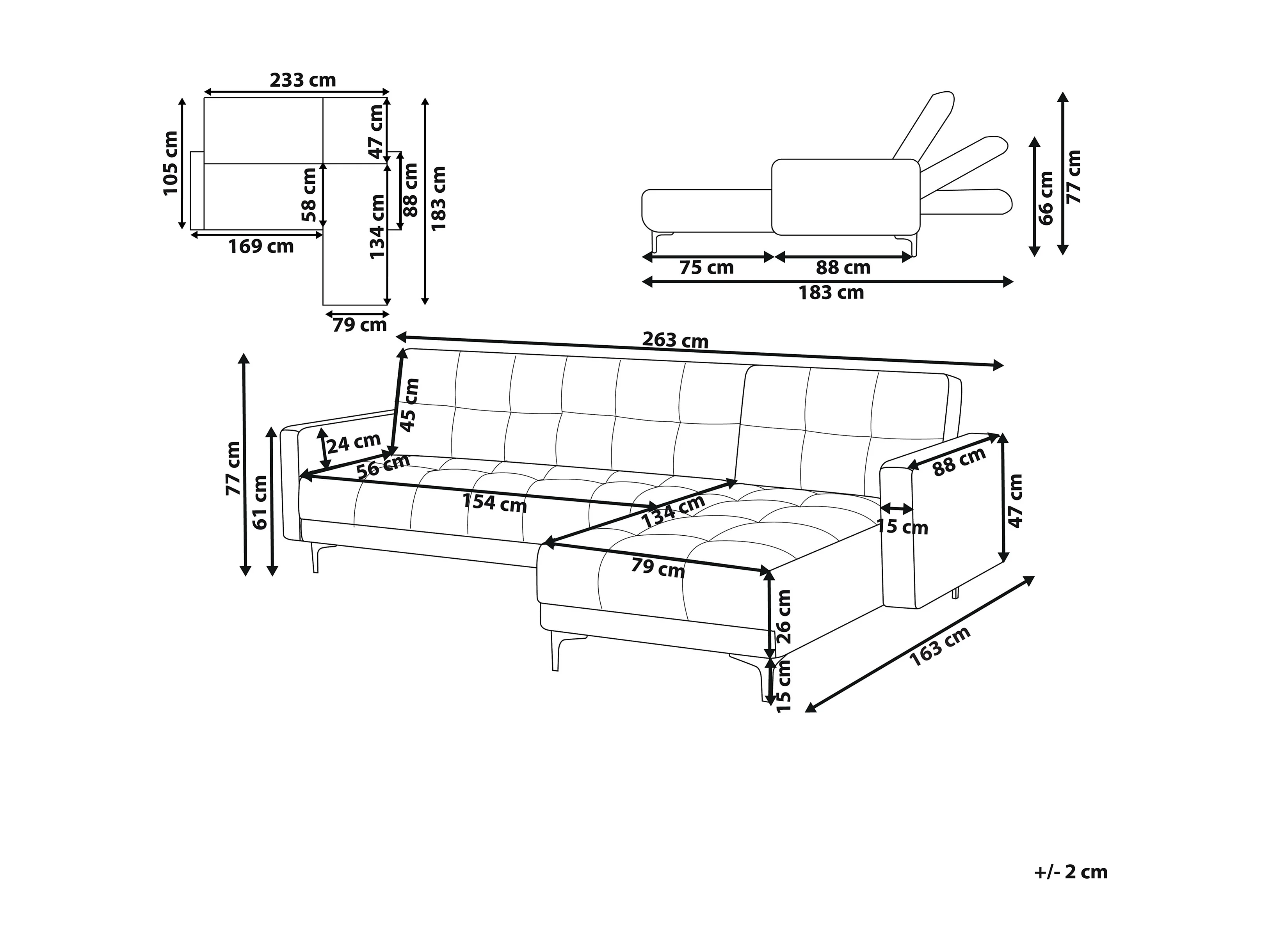 Ecksofa Stoff creme weiß gesteppt 4-Sitzer linksseitig mit Schlaffunktion Alnes