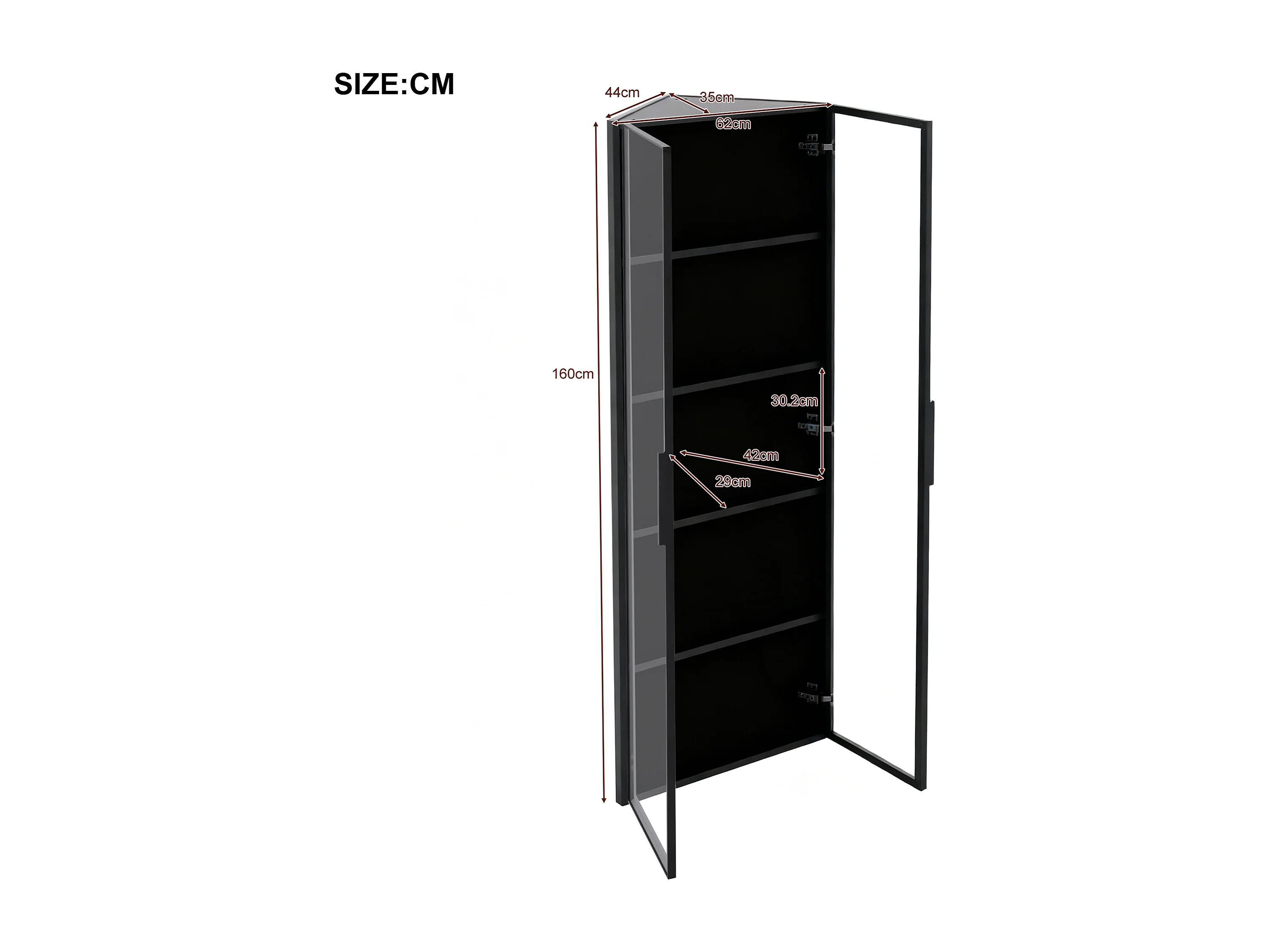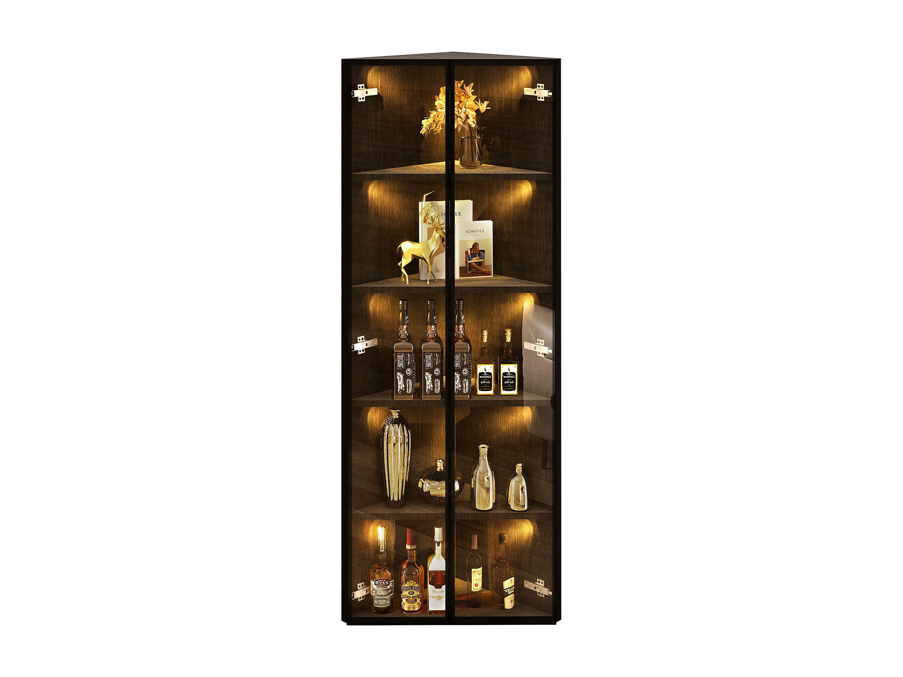 Eckvitrine aus Sicherheitsglas – 62 x 35 x 160 cm – mit LEDs, Staubschutzabdeckung und 2 Türen – MDF und Glas – schwarz