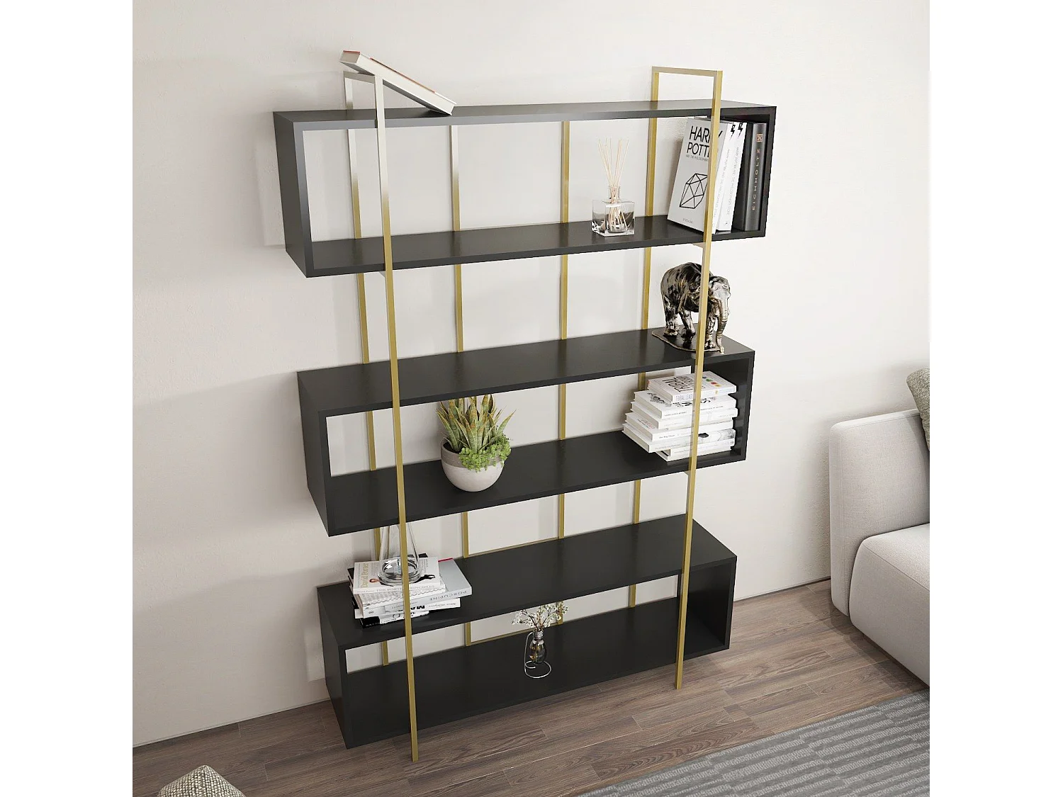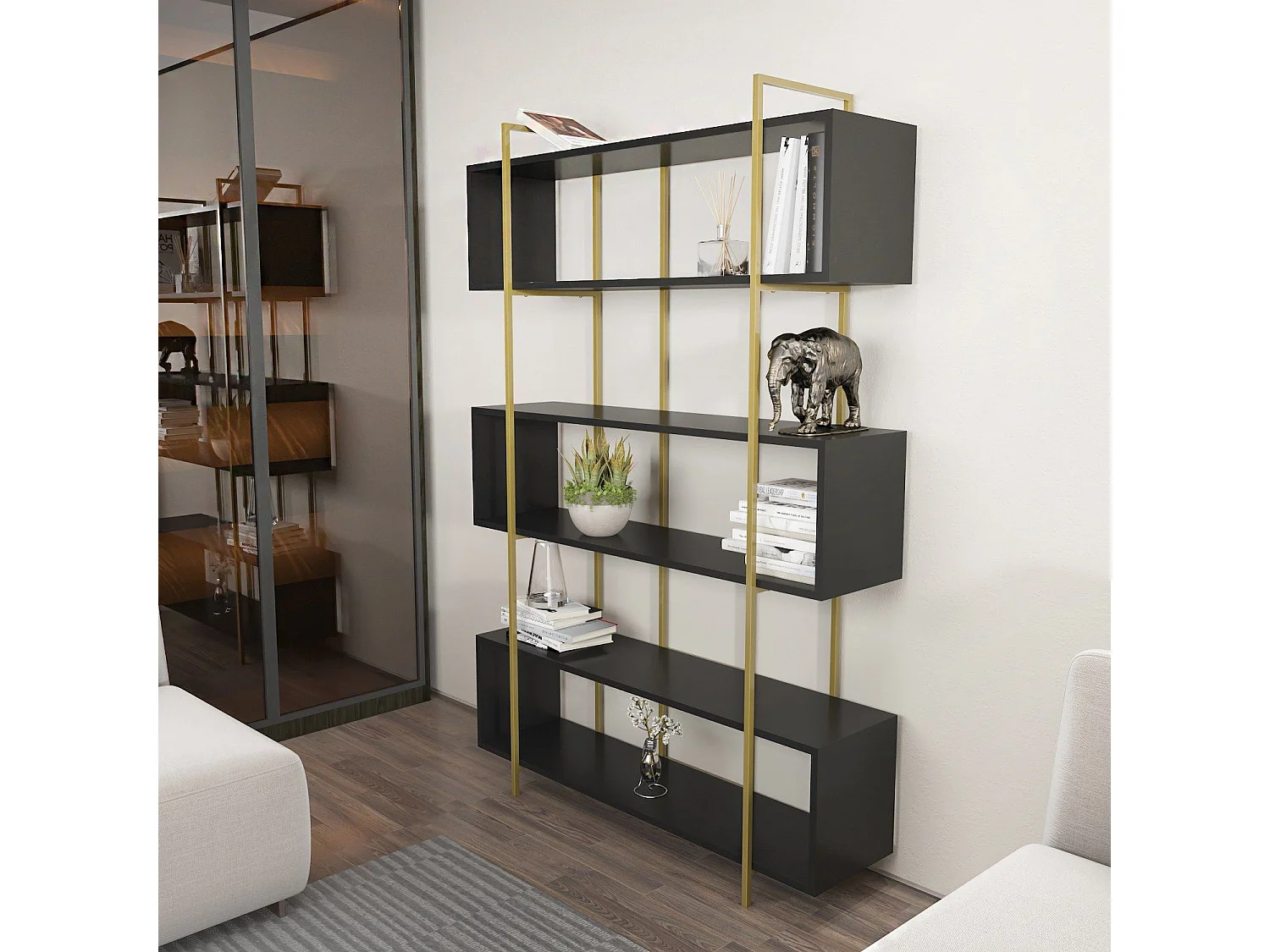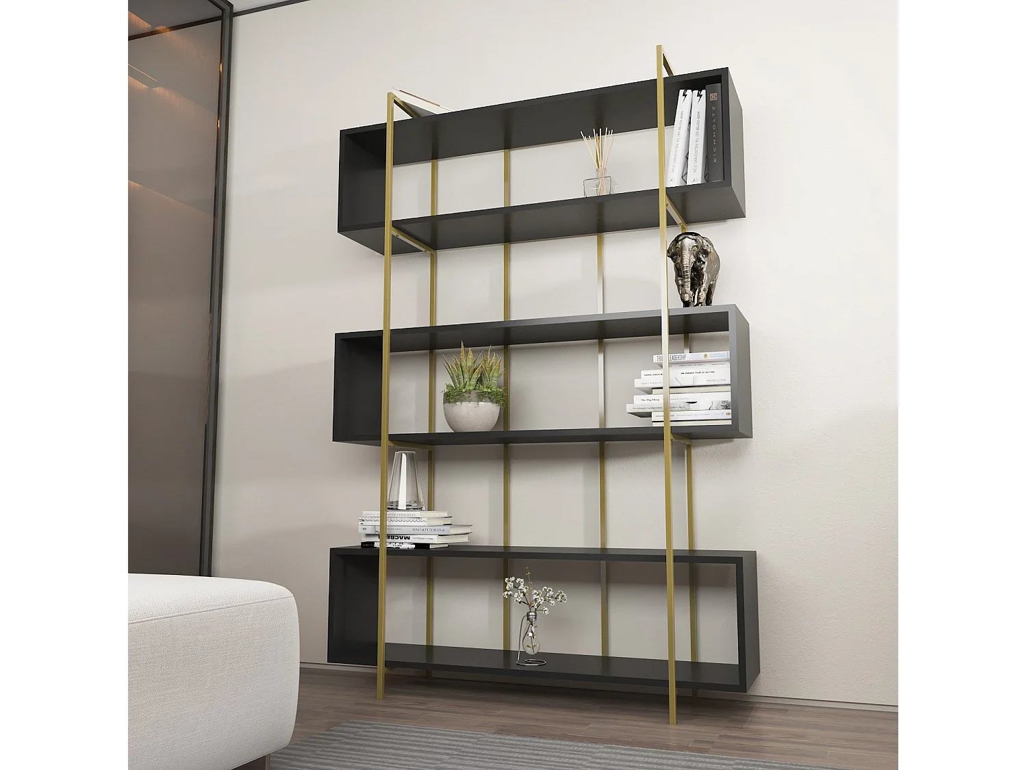 Edles Regal in Anthrazit und Gold, 120 x 160 x 29,6 cm | 100 % melaminbeschichtete Spanplatte, 18 mm stark | Moderne Aufbewahrungslösung für