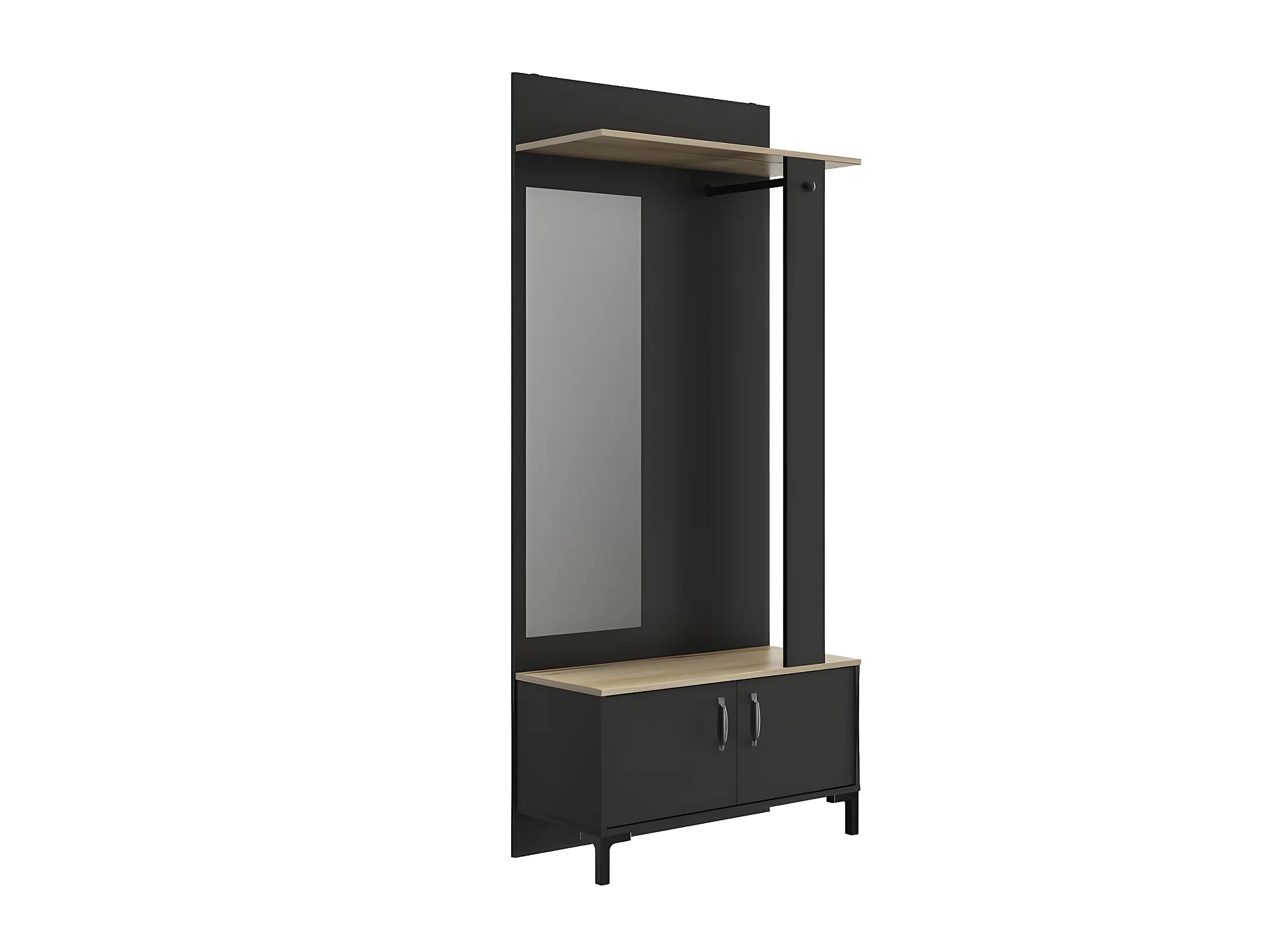 Eingangsschrank mit 2 Türen – SonomaEiche und schwarzes Dekor – 81 x 37 x Höhe 190 cm